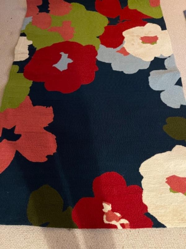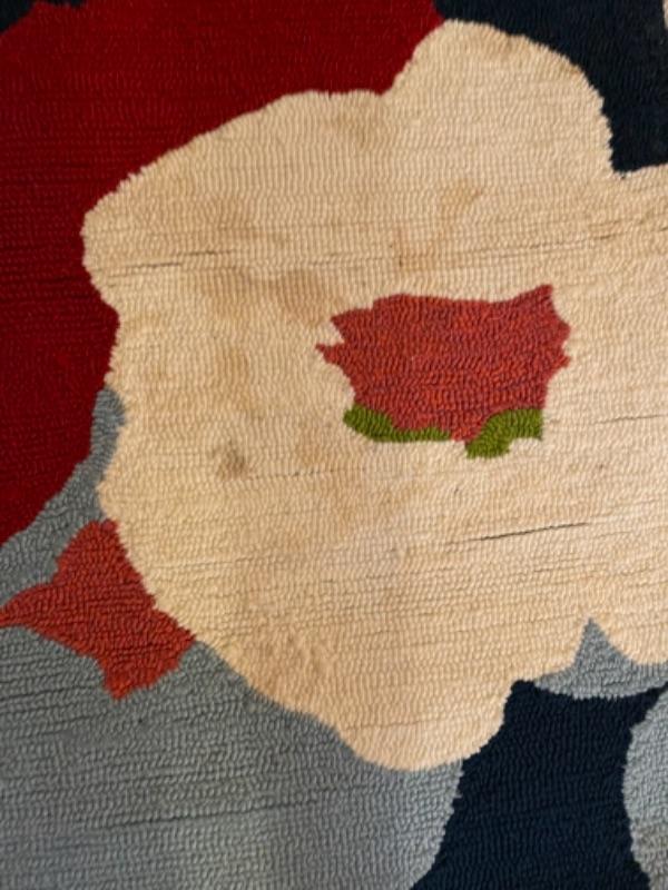 B481 Wool Hooked Rug Navy Floral Abstract 5’x7’