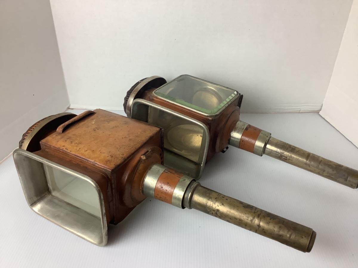 B484 Pair of Antique Copper Coach Buggy Lanterns