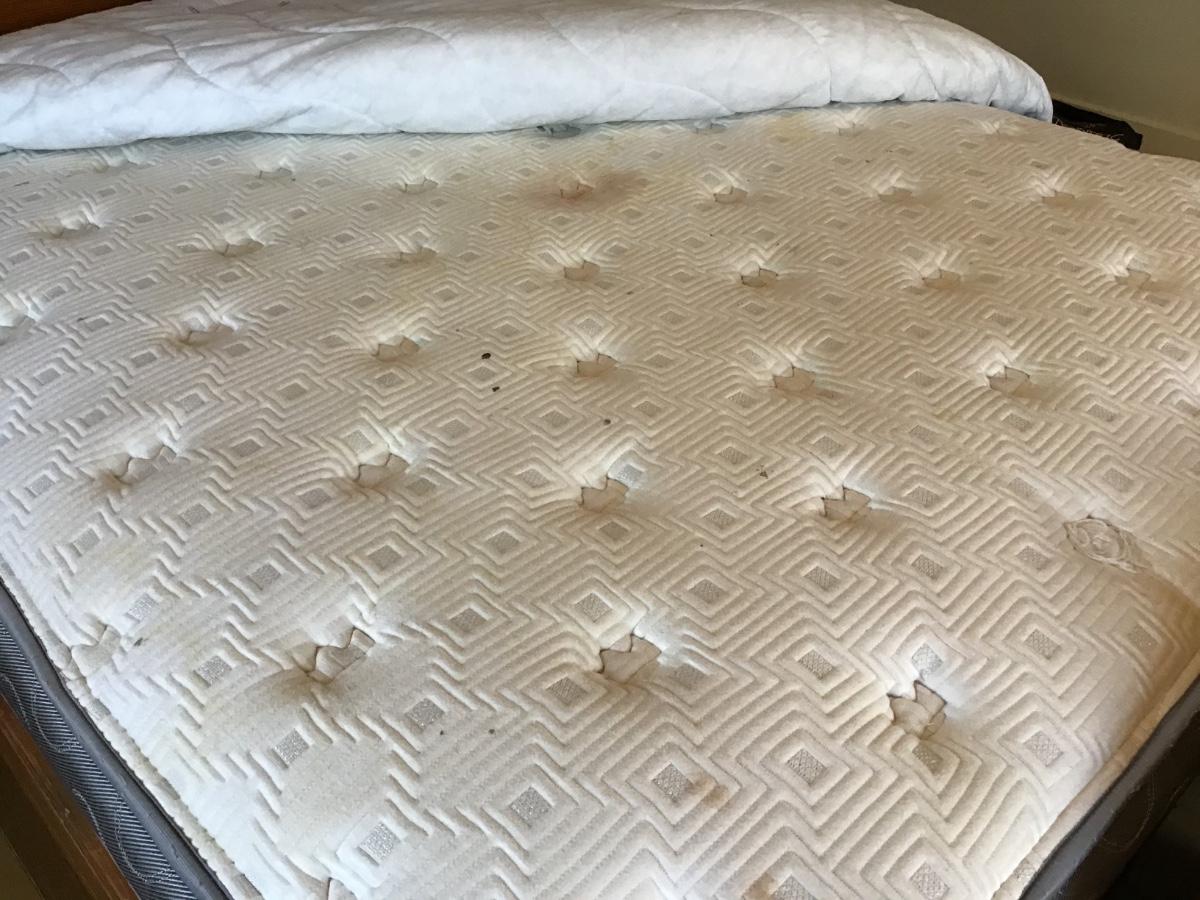 Beautiful bed set (Mattress has some stains, comes with mattress cover)