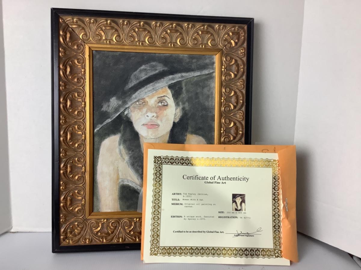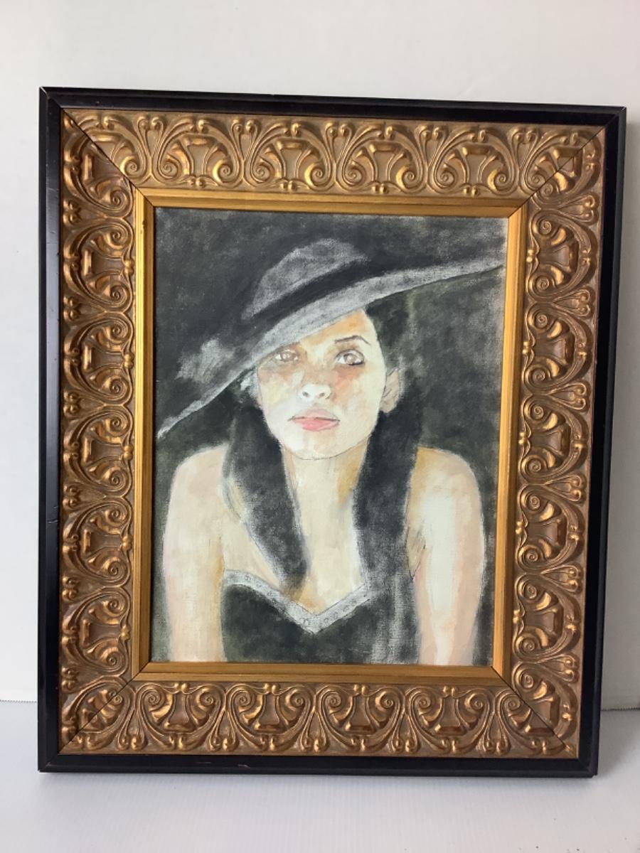 Beautifully framed Oil on canvas of a Woman with a Hat. Comes with certificate of authenticity