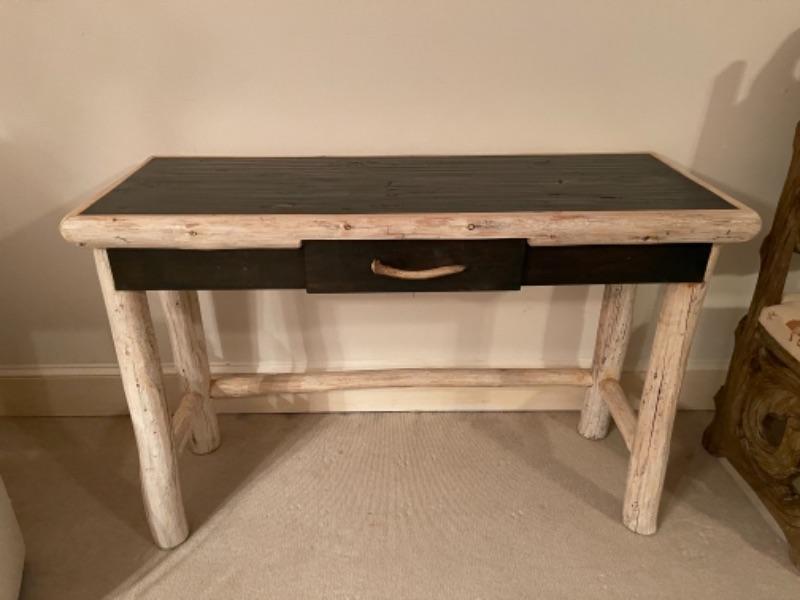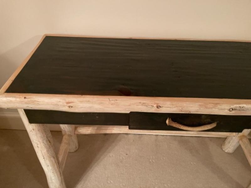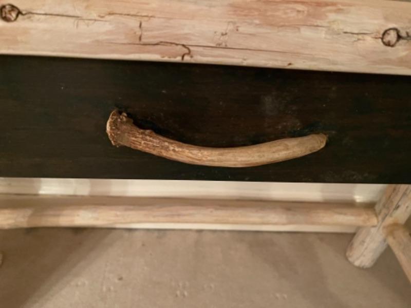 B492 Bark Wood Console Table with Single Drawer Antler Handle