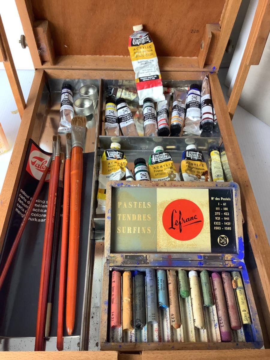 Comes with pastels, Rembrandt paints and brushes , cleaning solvent