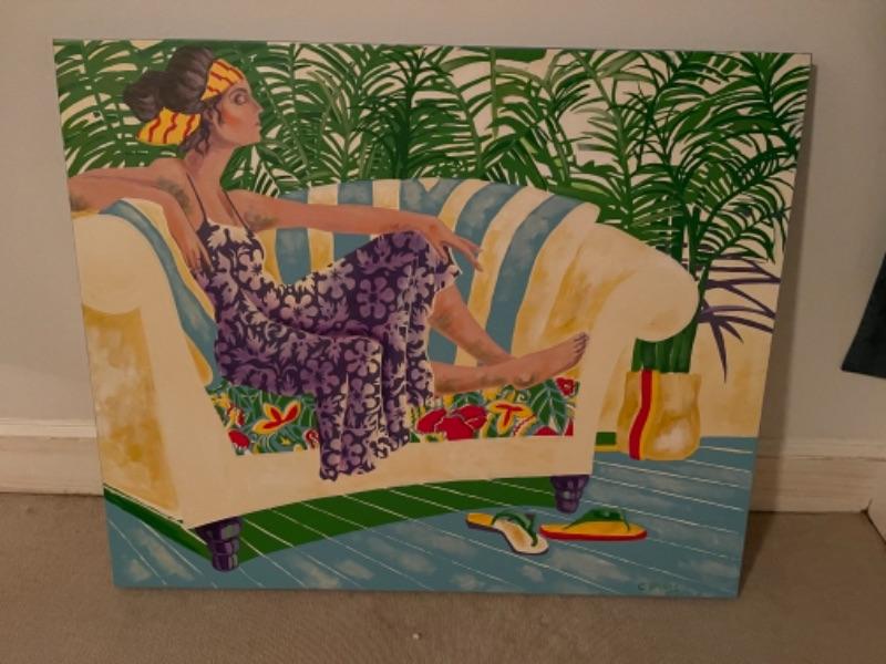B496 Lady Basking in Sun Artwork signed C. Williams