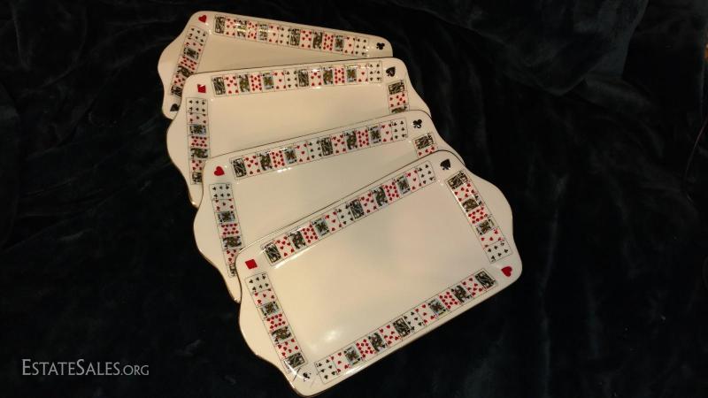 Queen's Sandwich Serving Trays (4), Bone China, "Cut for Coffee" Mint Condition! No chips or cracks; highly collectible