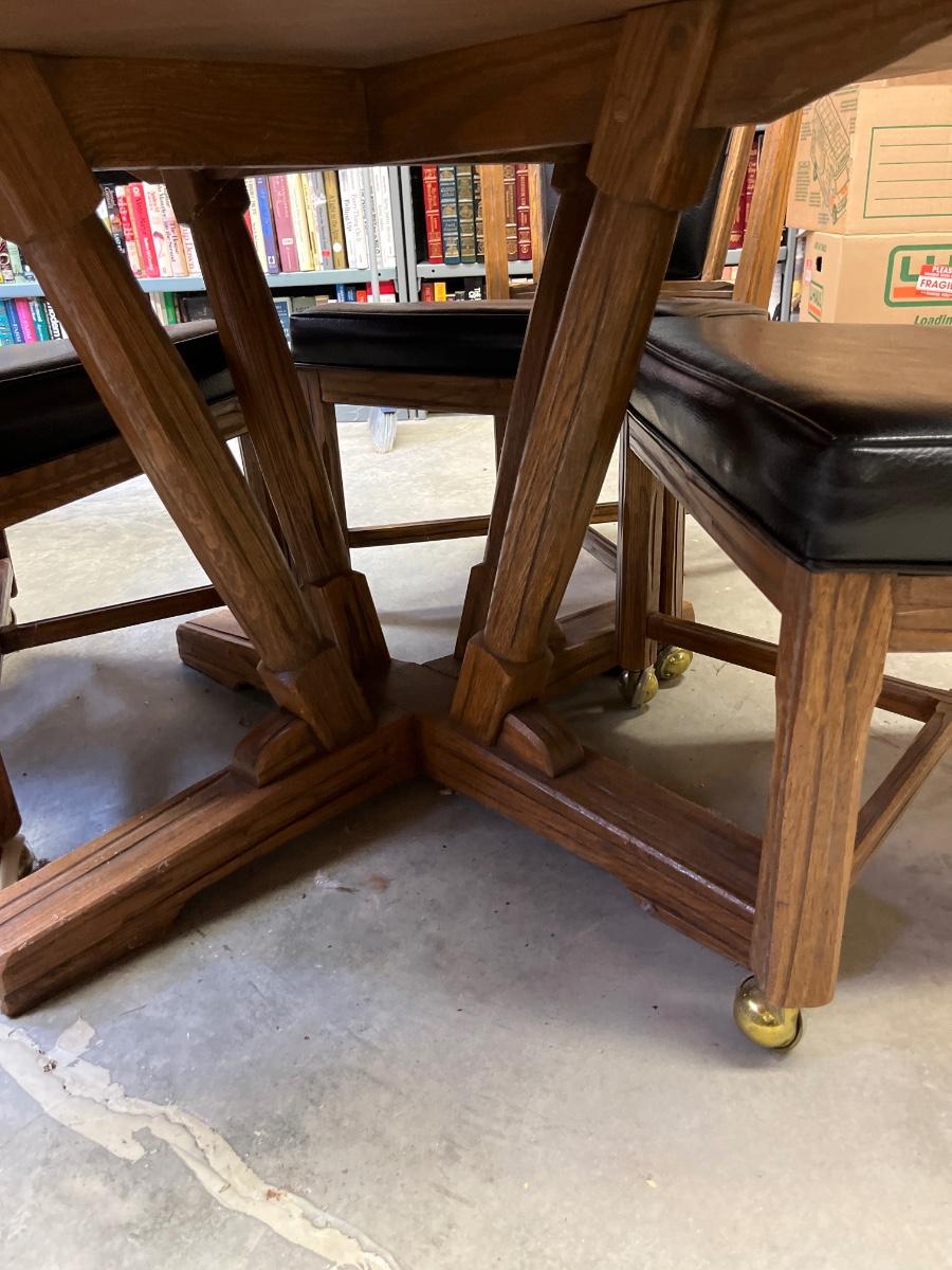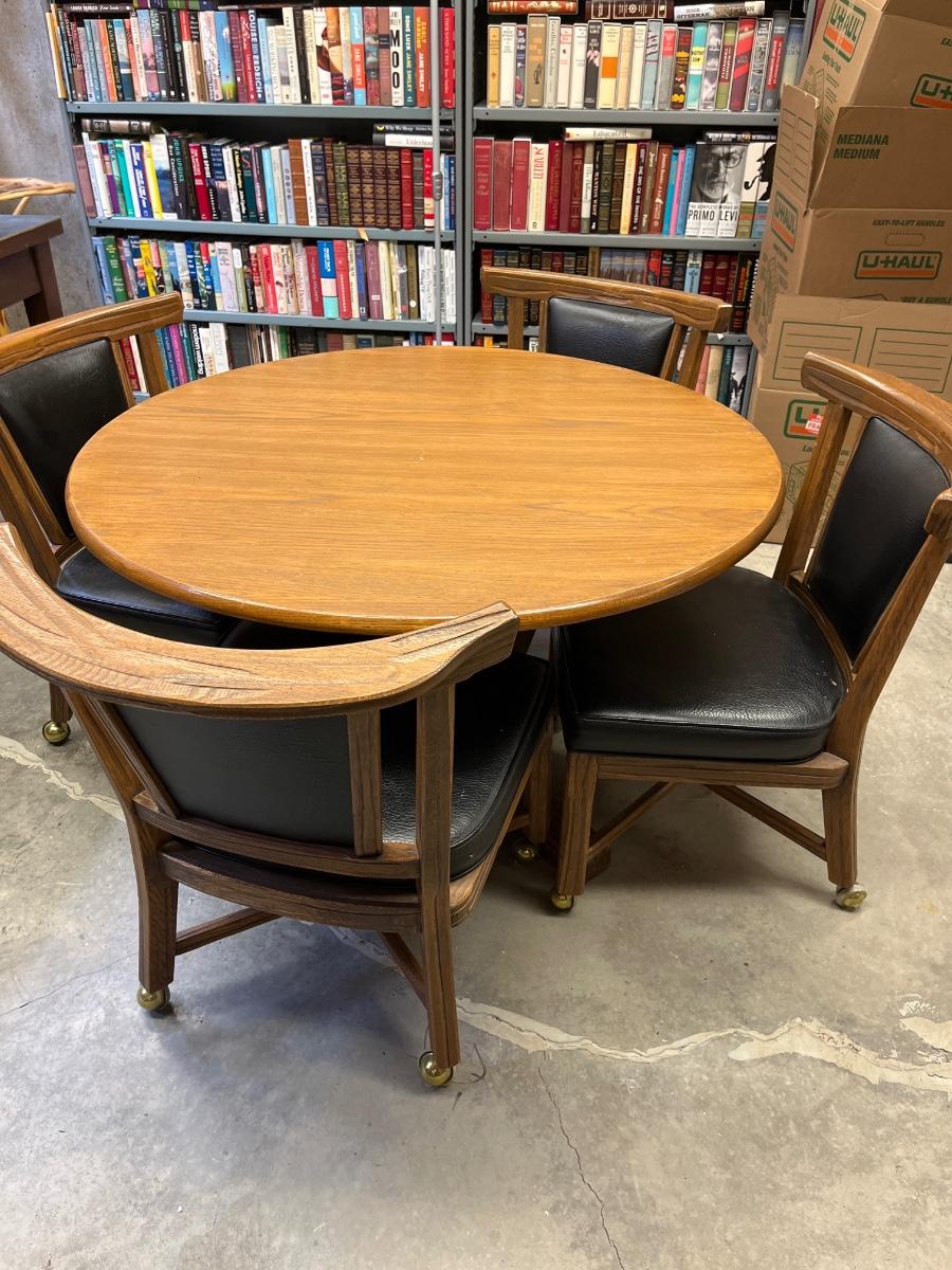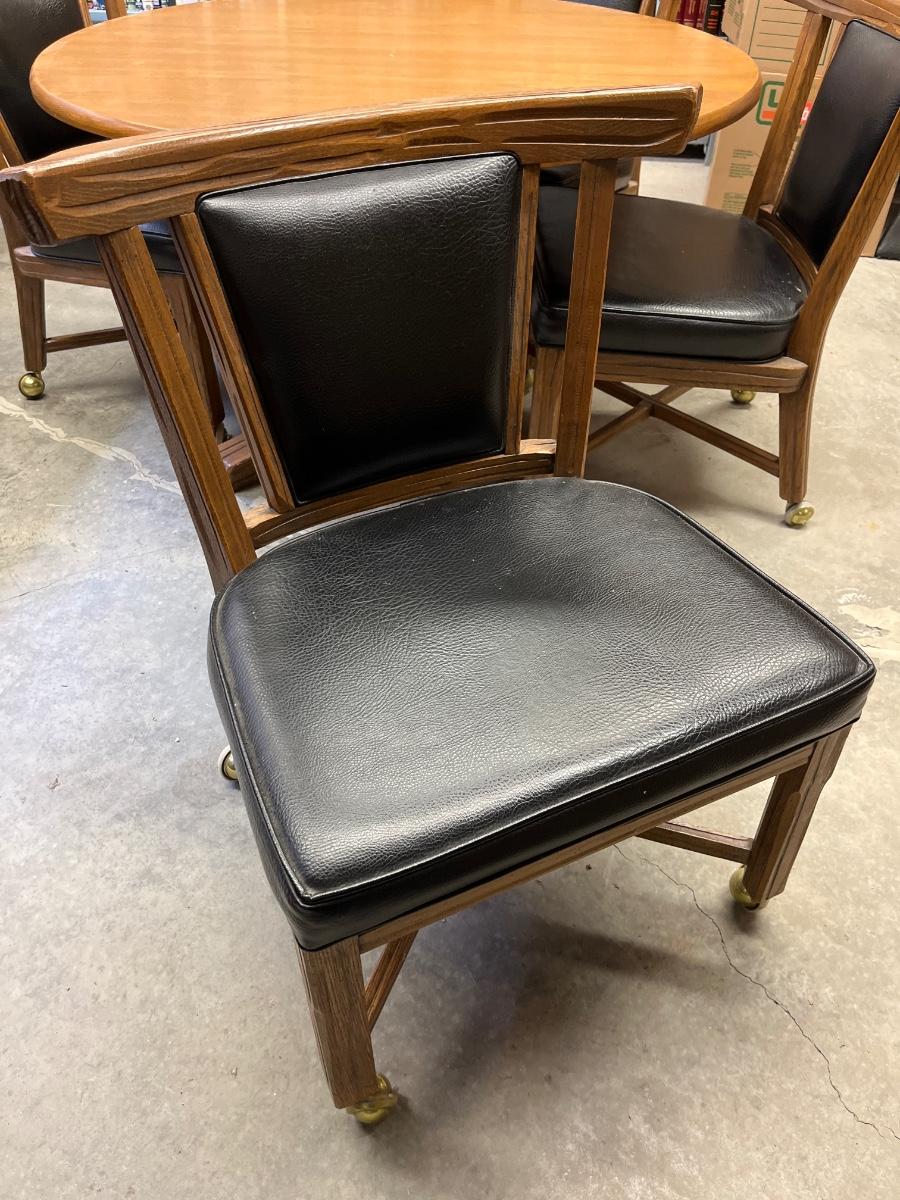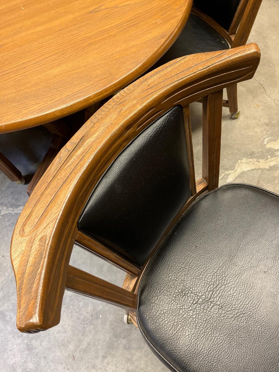 In excellent condition. Chairs have casters. Great vintage piece. Located in Basement