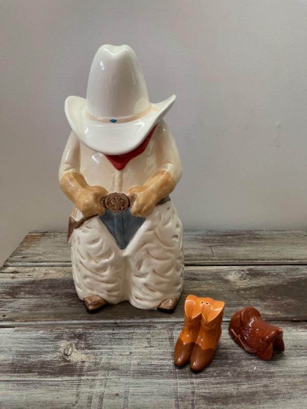 B554 Resting Cowboy Cookie Jar with Salt and Pepper