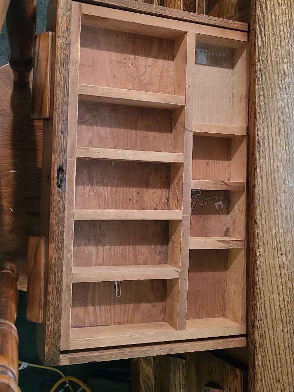 This could use some work, but is very sturdy and would look great upcycled with stain or paint! Pictures say it best! Please see all pictures for exactly what is in the lot, the condition of the item/s, and the measurements if needed. Thank you for looking and have fun bidding!
