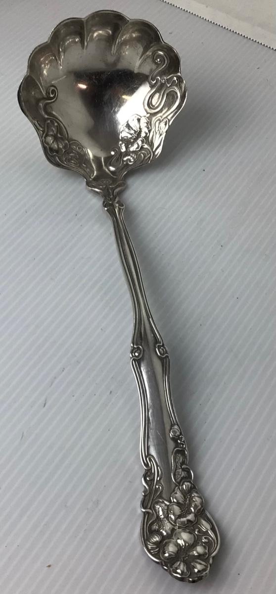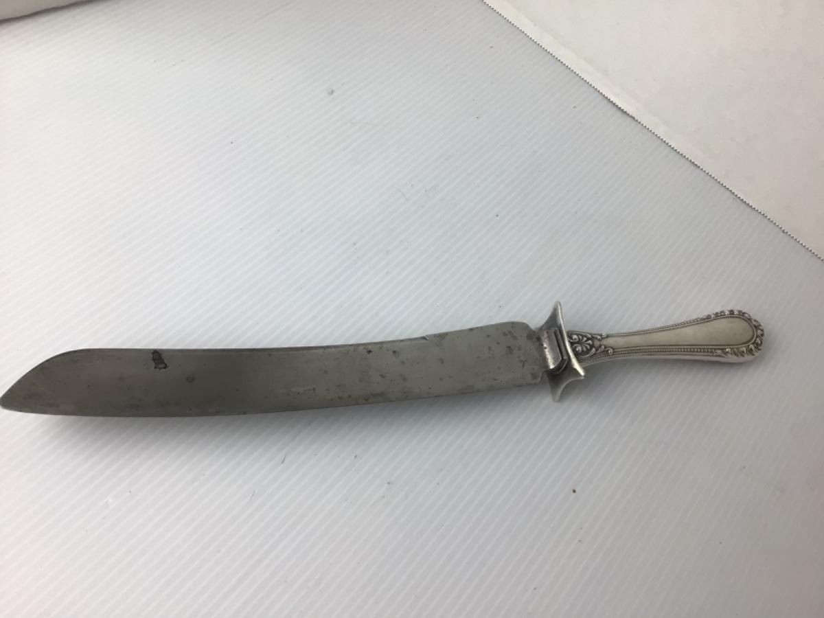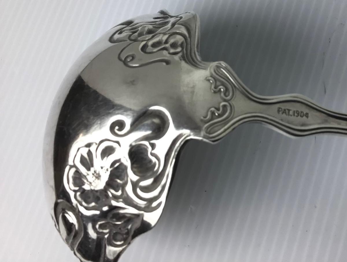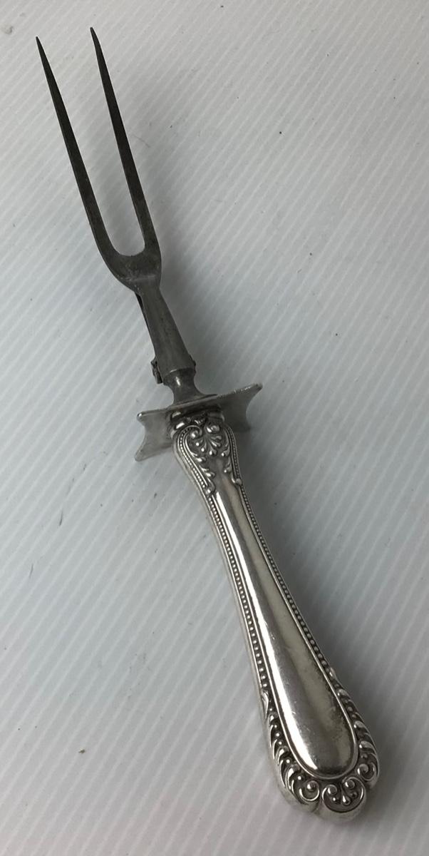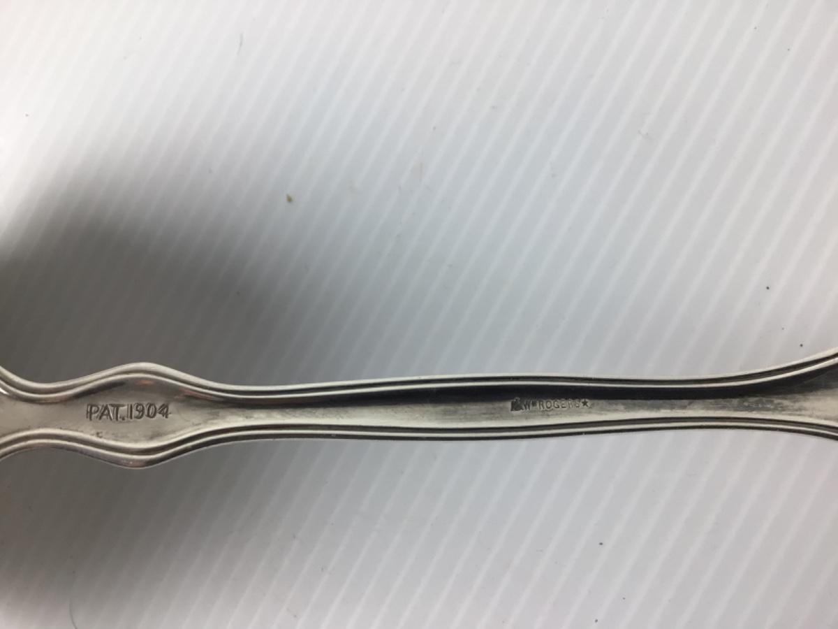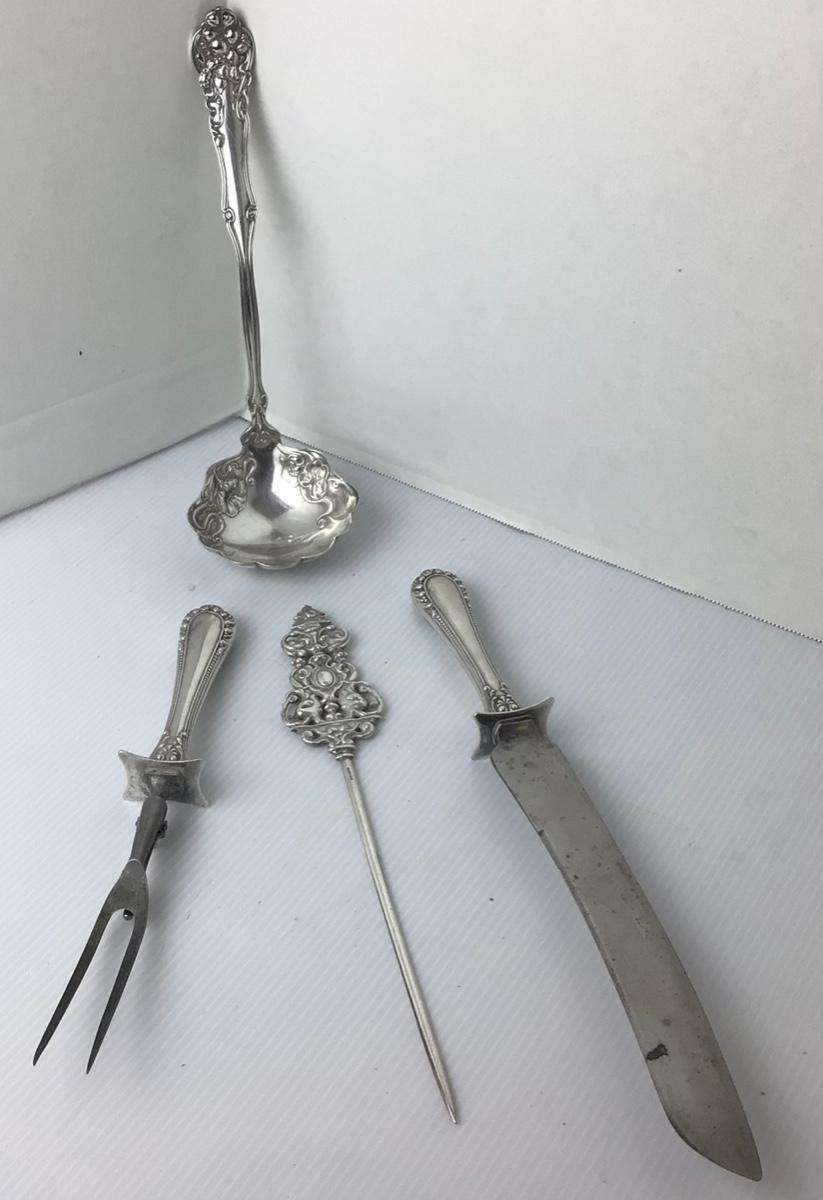 Silverplate craving set-(Knife & Two Tine Fork), W.M. Rogers ladle, Pat. 1904, Sabatier Antique French skewer