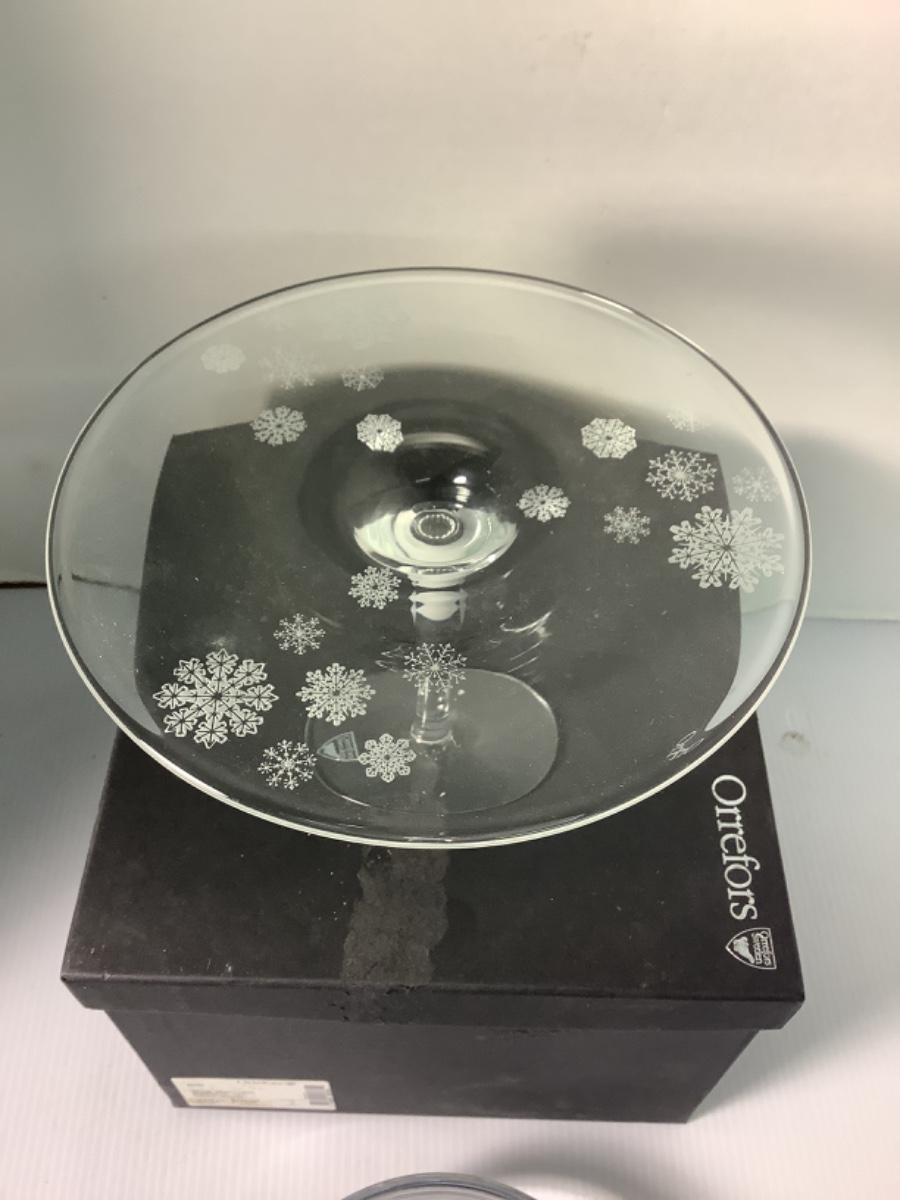 B641 Orrefors Sno Pedestal Plate with Santa Bowl