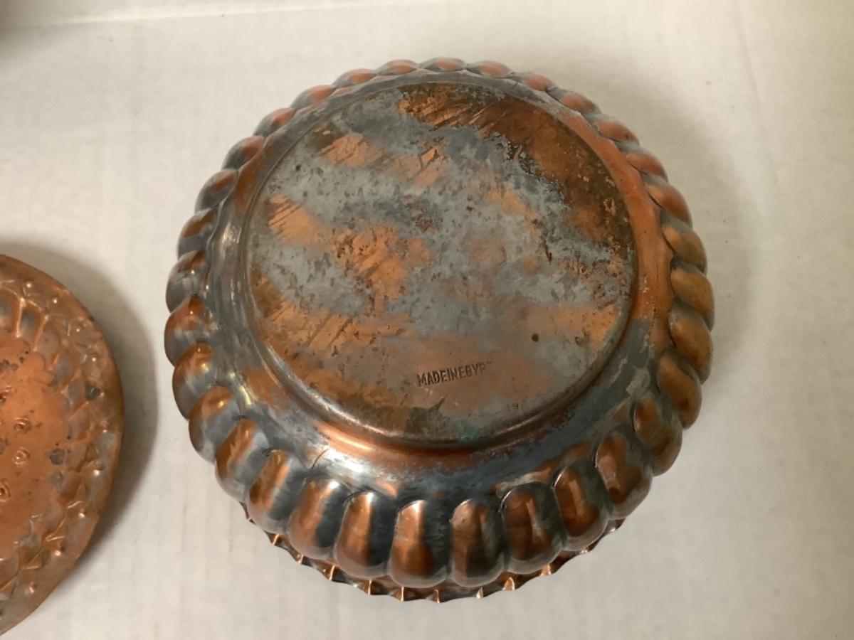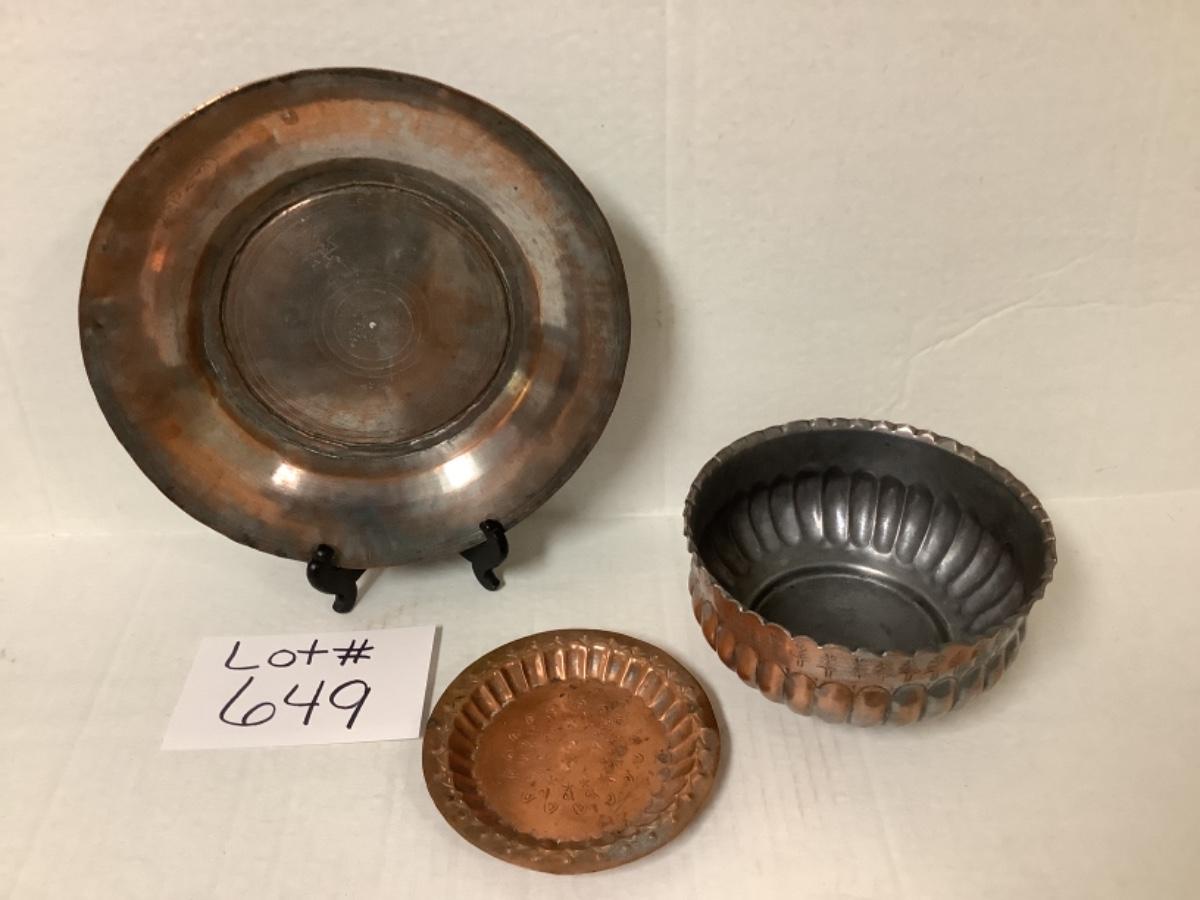 Vintage Egyptian Copper plate 10-1/2” round, bowl 7” round 3-1/2” tall and small plate 5-3/4” round
