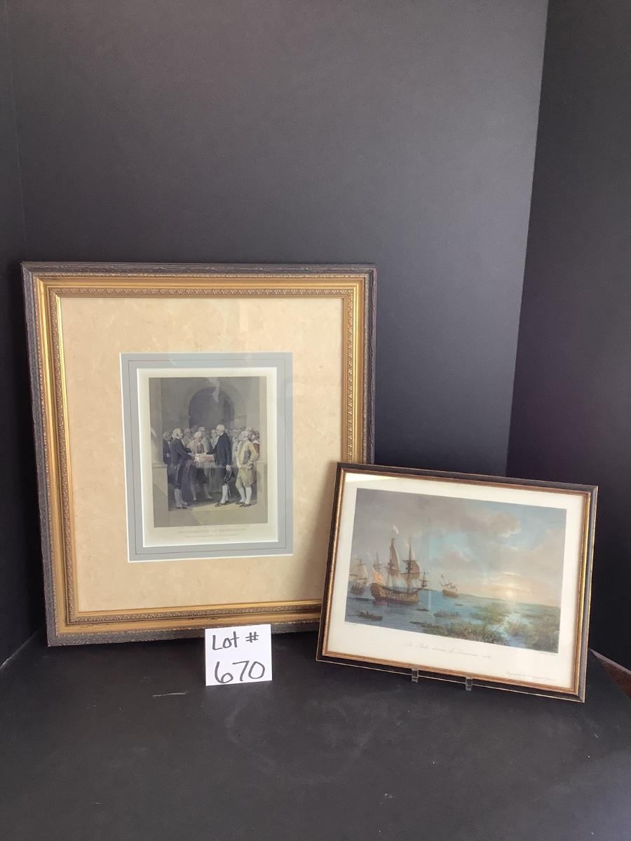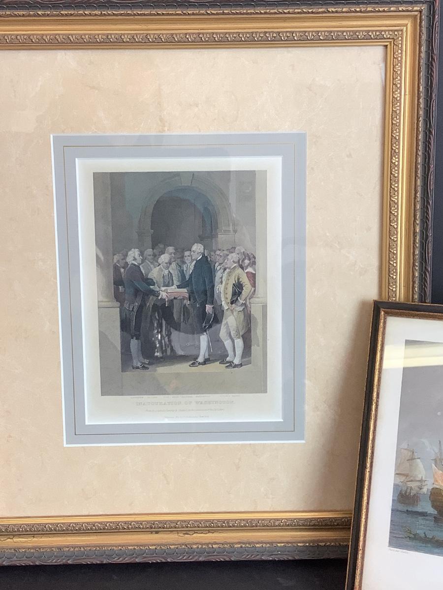 B671 Pair of Vintage Framed Prints of Inauguration of Washington