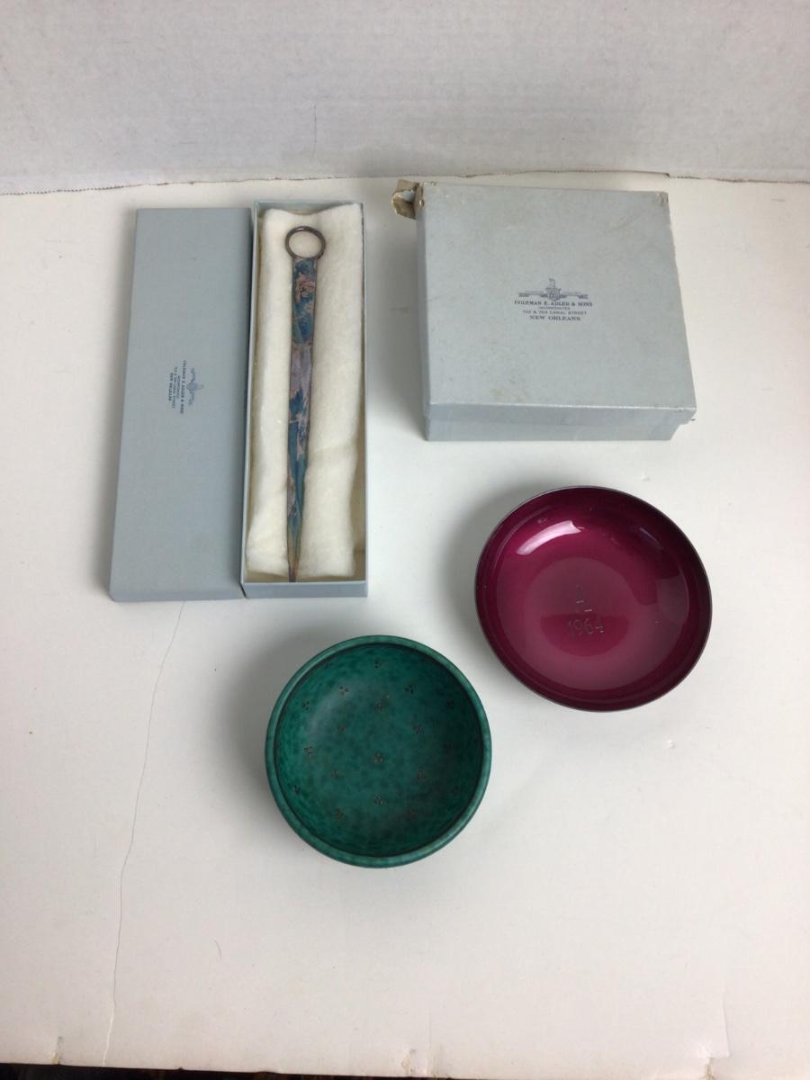 C - 687 Gustavsberg Argenta Pottery Bowl/Enamel& Silver Plated Bowl