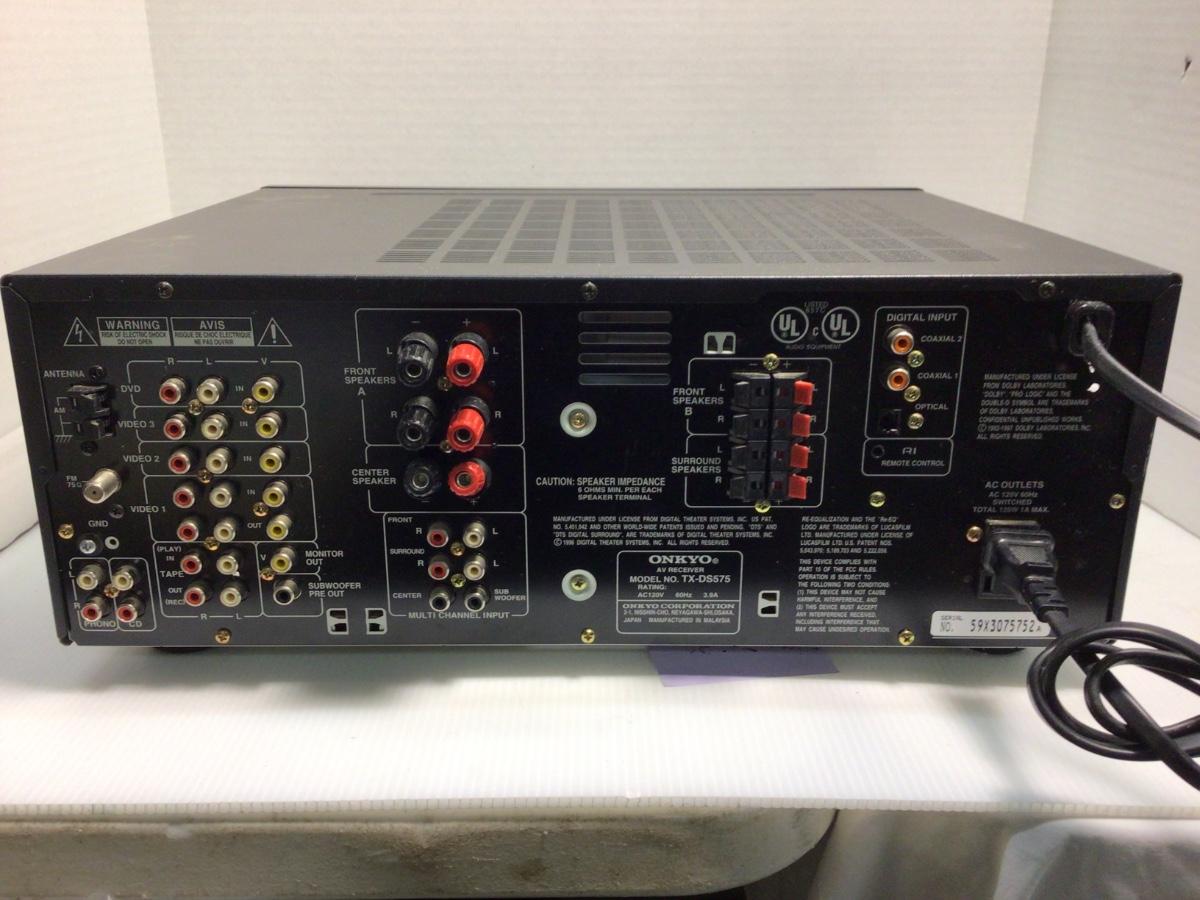 Comes with one ONKYO AV Reciever. Power level AC 120 volts, Model number TX - DS575. The unit is in working condition.