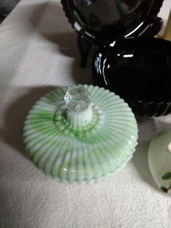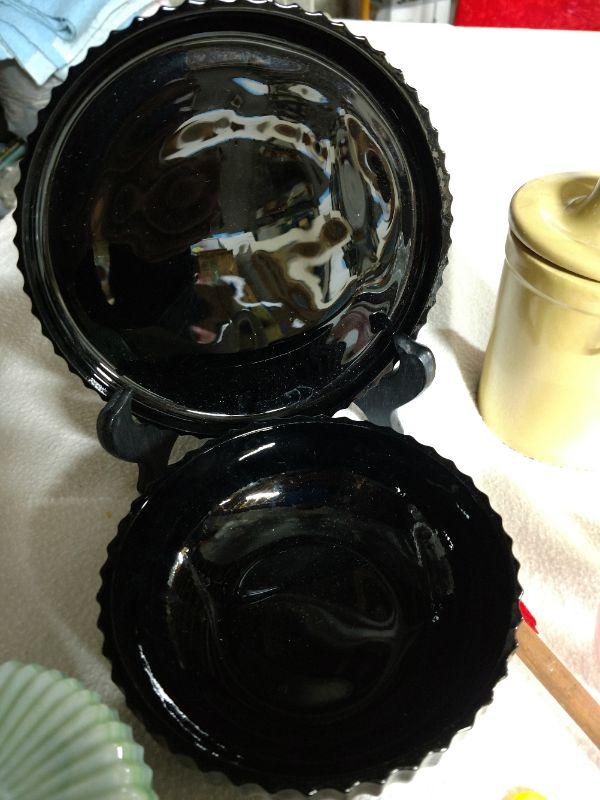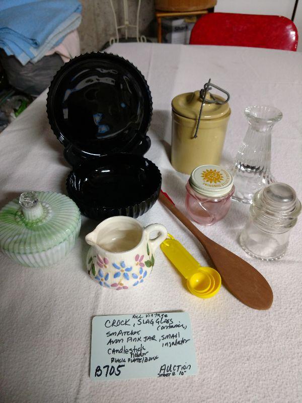 crock, insulator, Avon Jar, Black plate matching bowl, pitcher