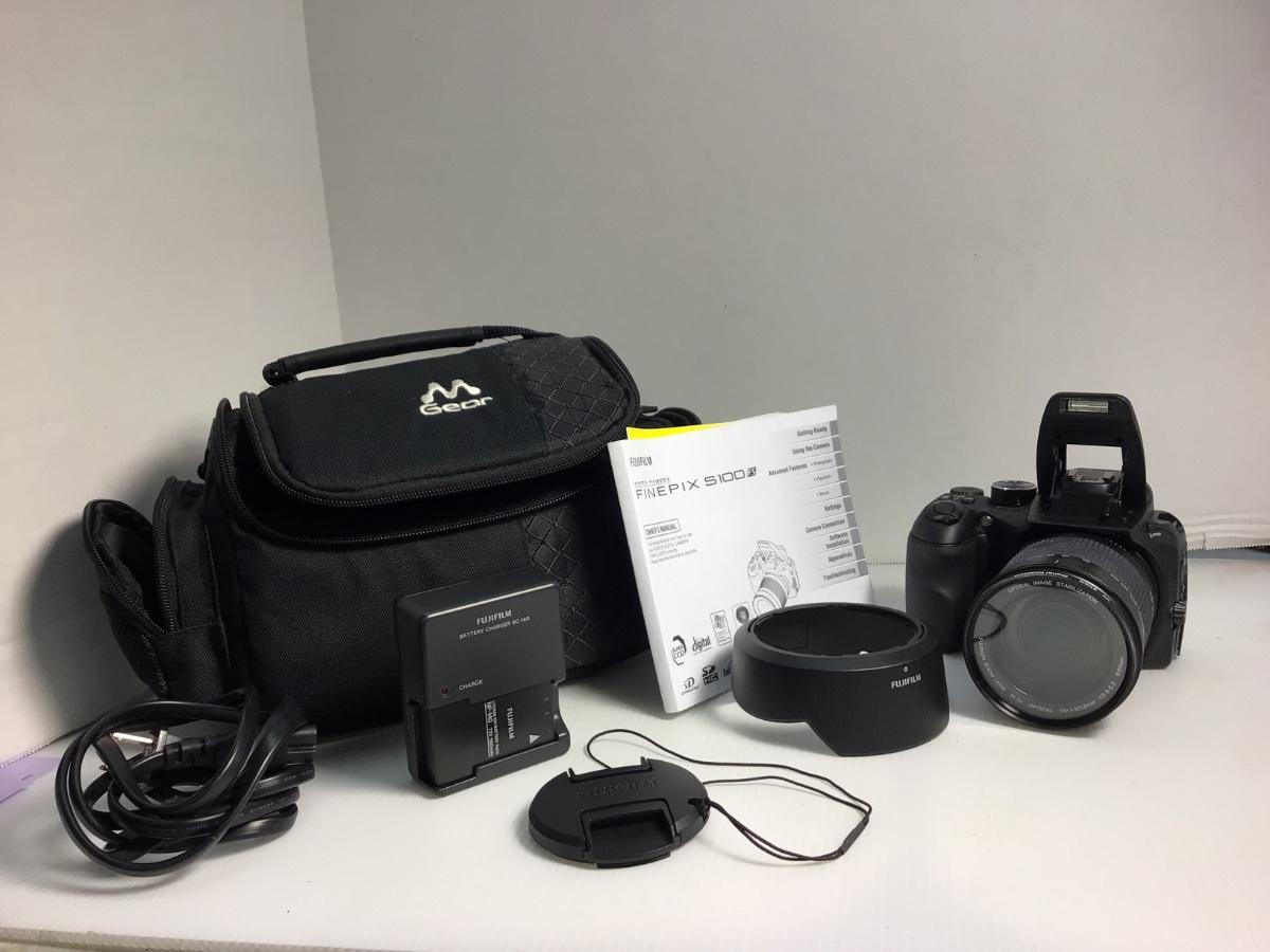 Comes with “M-Gear” carrying case, FujiFilm Manuel. S100 FS Camera, 2 rechargeable batteries for the s100FS. A battery charger model BC-140, and one lens cap. S100 FS is in working condition.