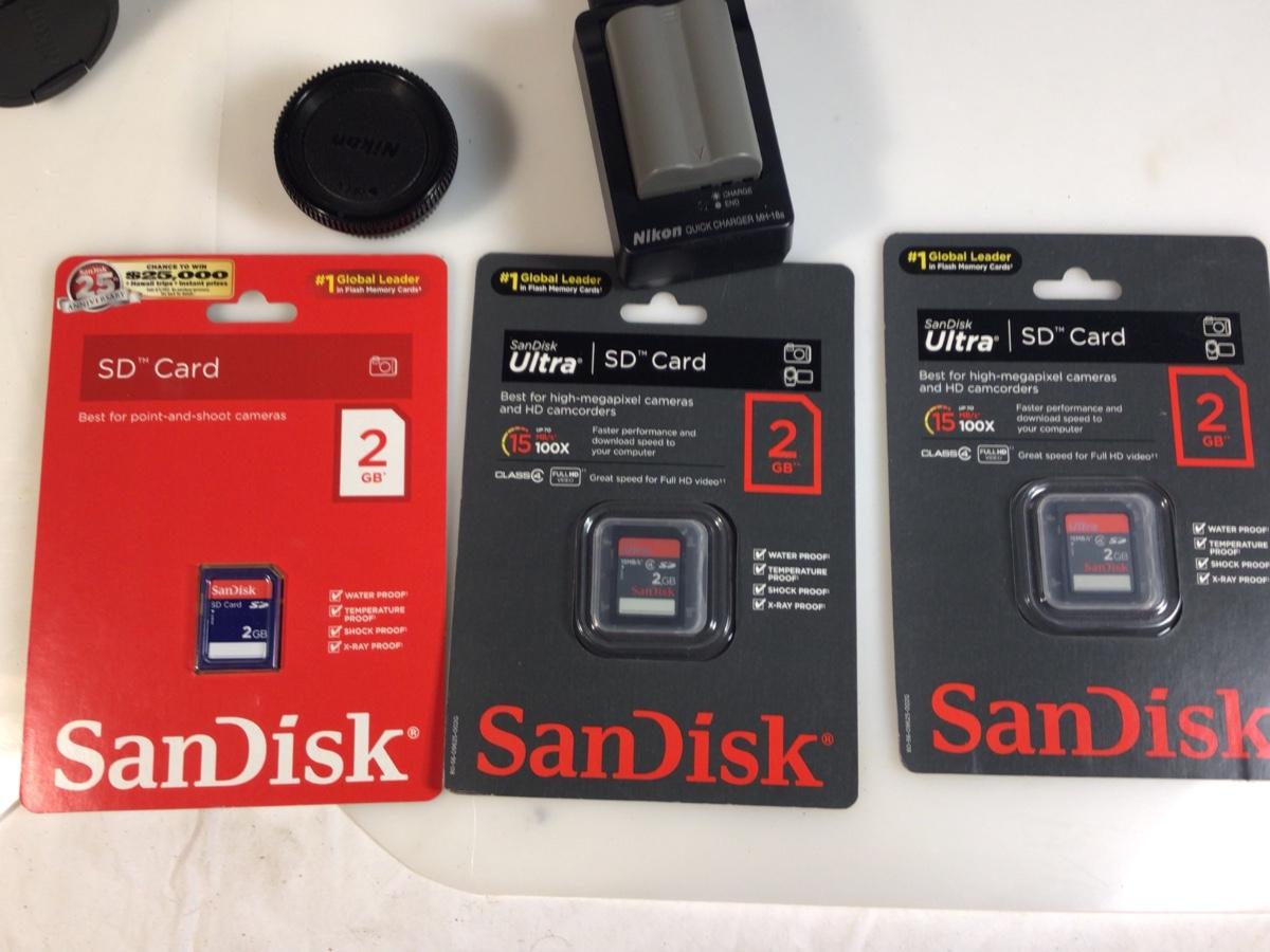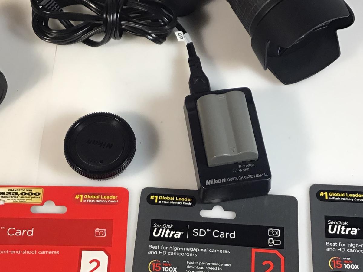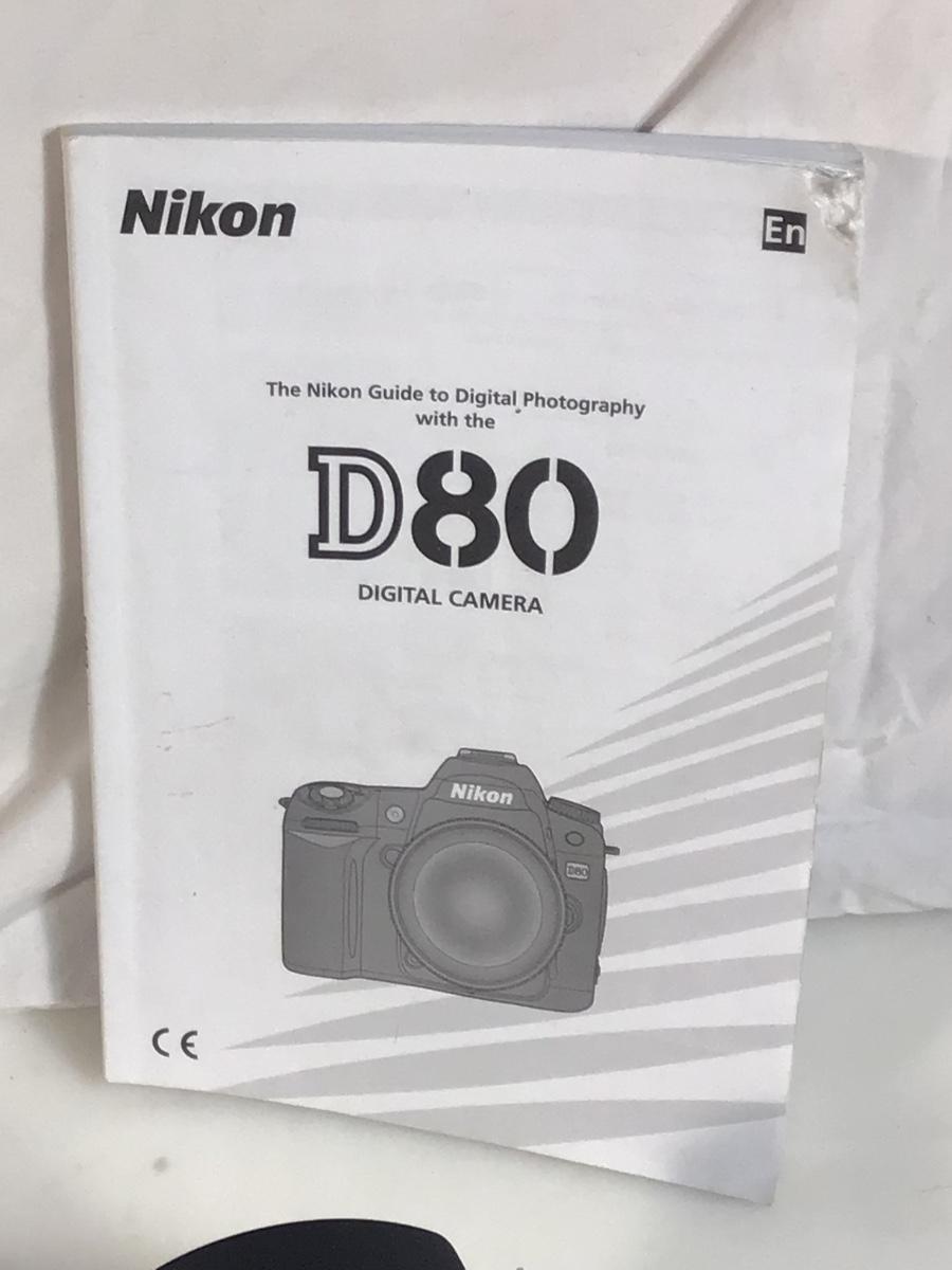 Comes with one Nikon D80 Camera, has included 2 internal batteries, one battery charger for the D80 batteries, 3 individual 2GB SanDisk SD cards, one D80 Manuel, and lastly comes with a Nikon CoolPix L110 Camera. CoolPix L110 DOES NOT work, bottom battery cover/connector snapped in picture listed. Being sold as is for parts. Nikon D80 in working condition