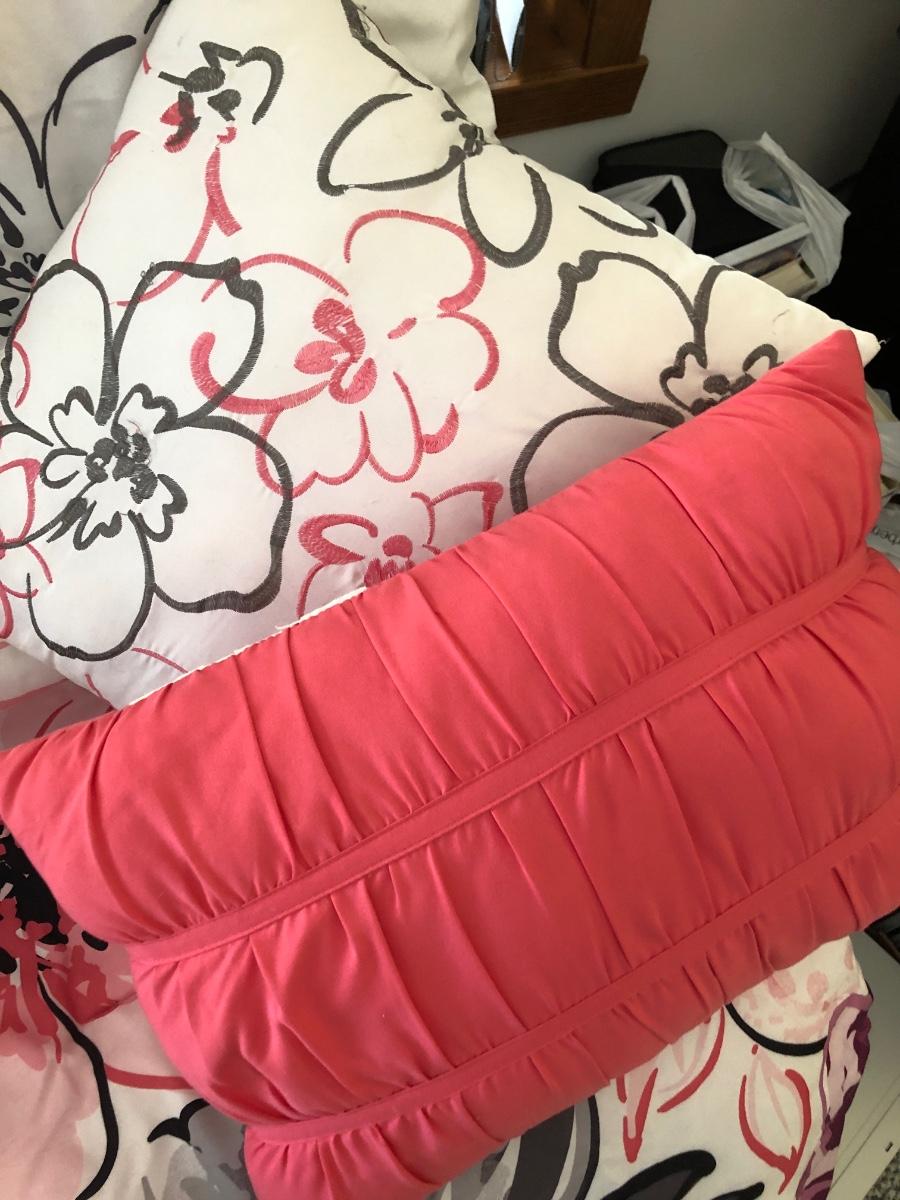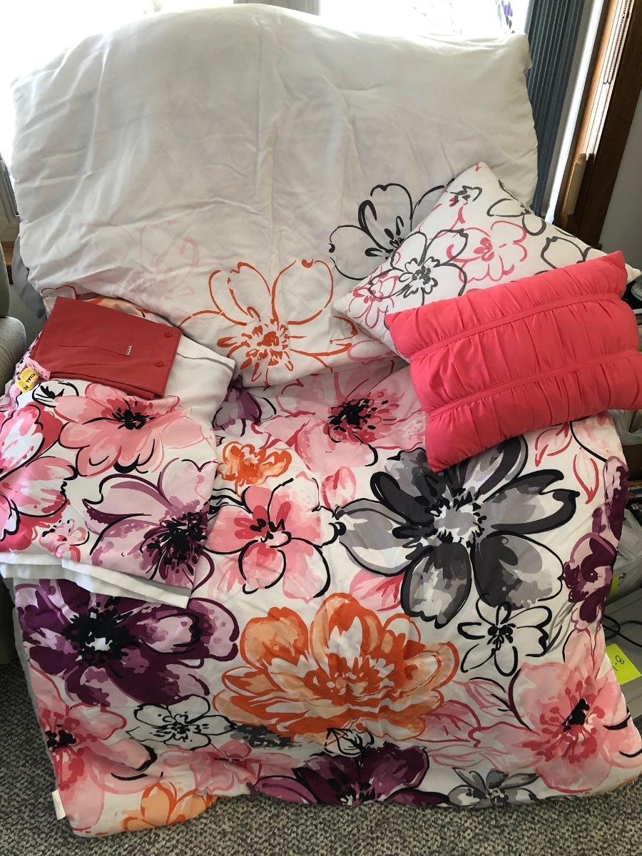 Appears unused. Includes comforter, 2 shams, 2 accent pillows.