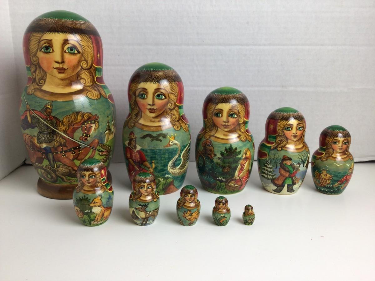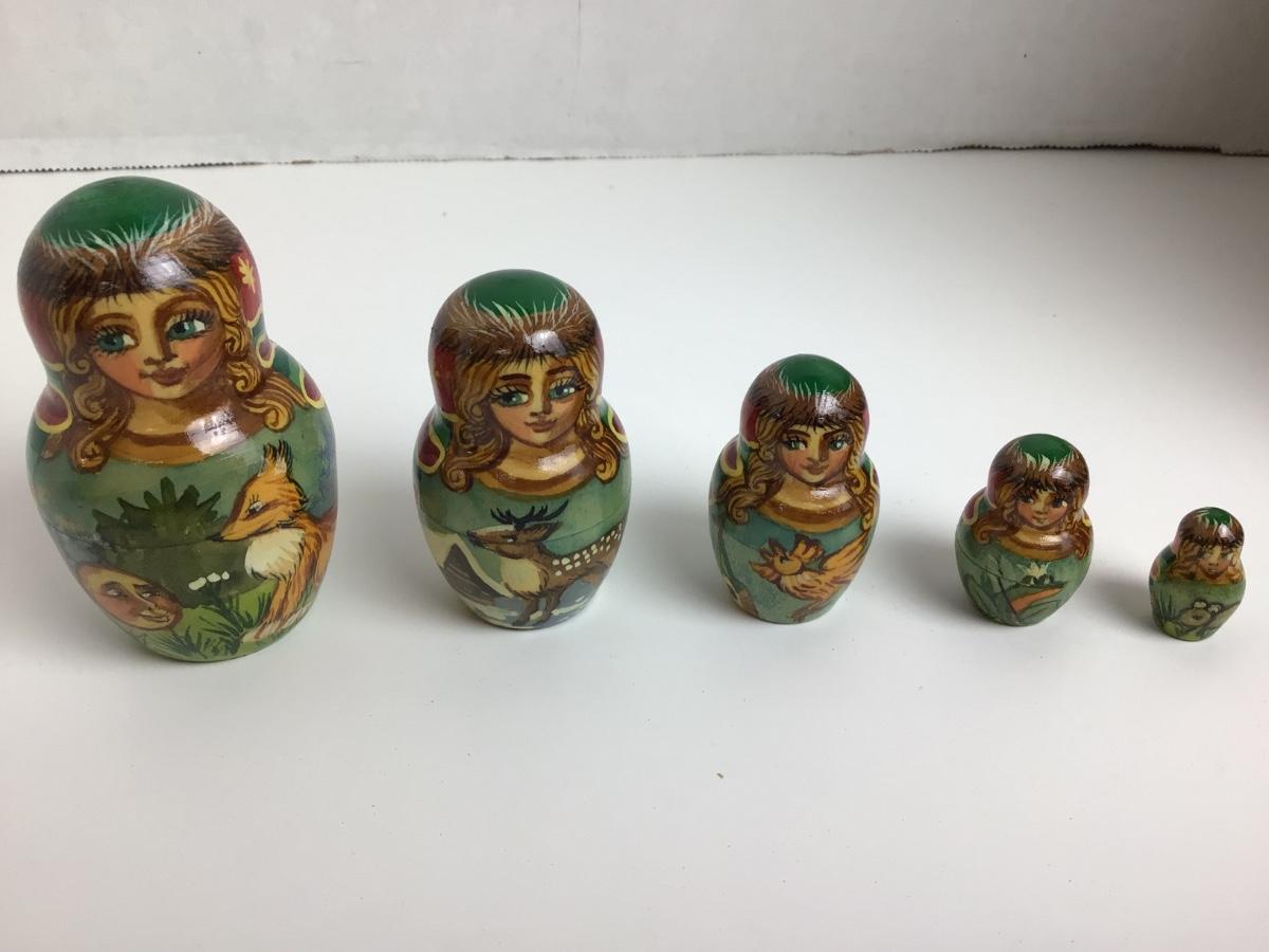 B749 Handpainted Signed Nesting Russian Matryoshka Doll