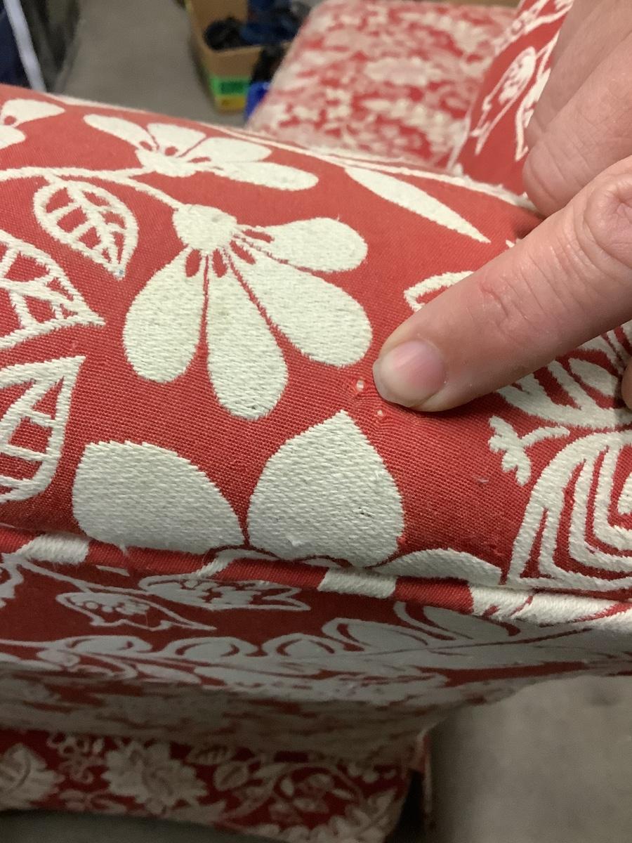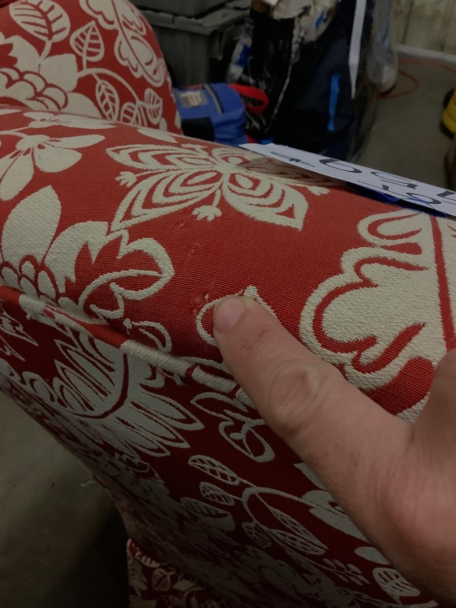 Light cat scratches (very minor) small hole on top , no cover on bottom of ottoman