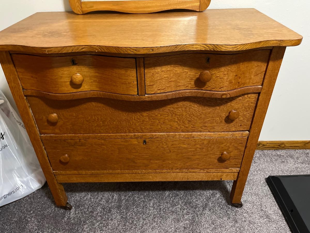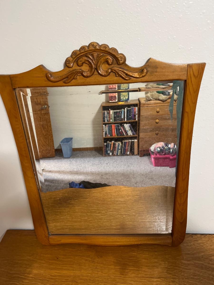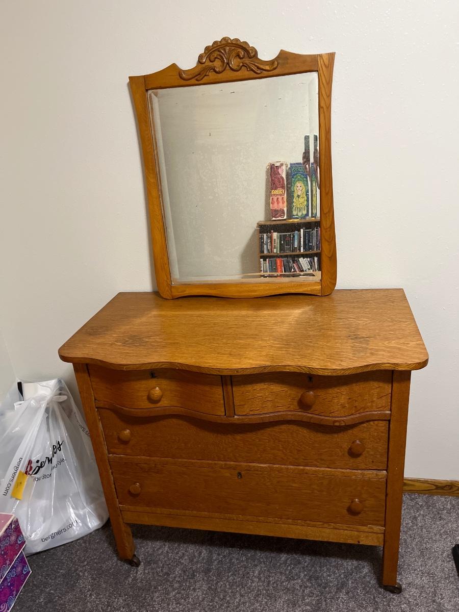 See pics! Mirror 30 x 22.5”. Dresser 21”d x 39”w x 34”h