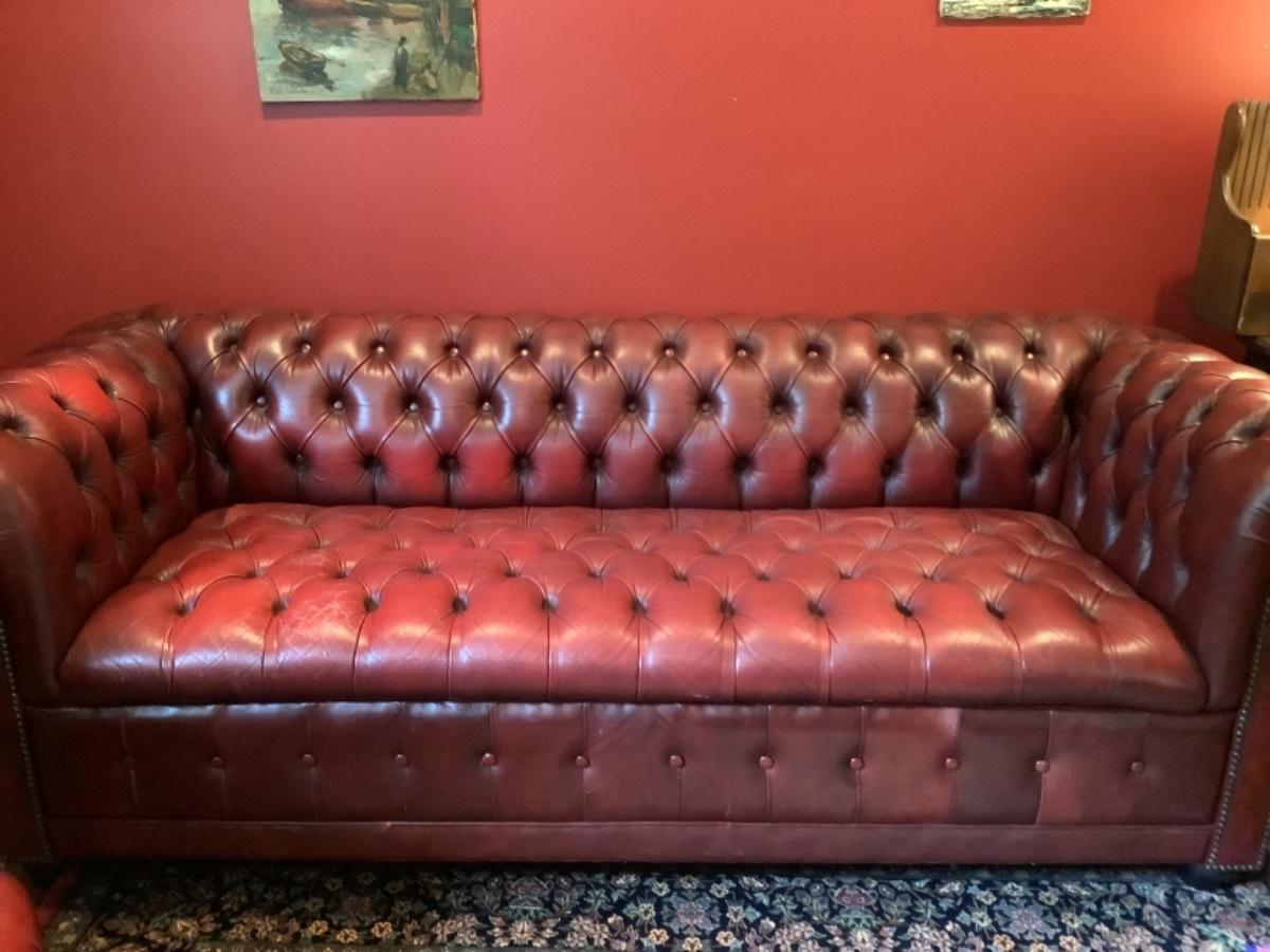 B789 Chesterfield Ox Blood Red Leather Tufted Sofa