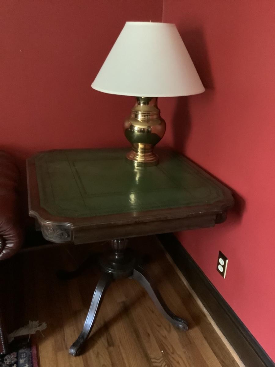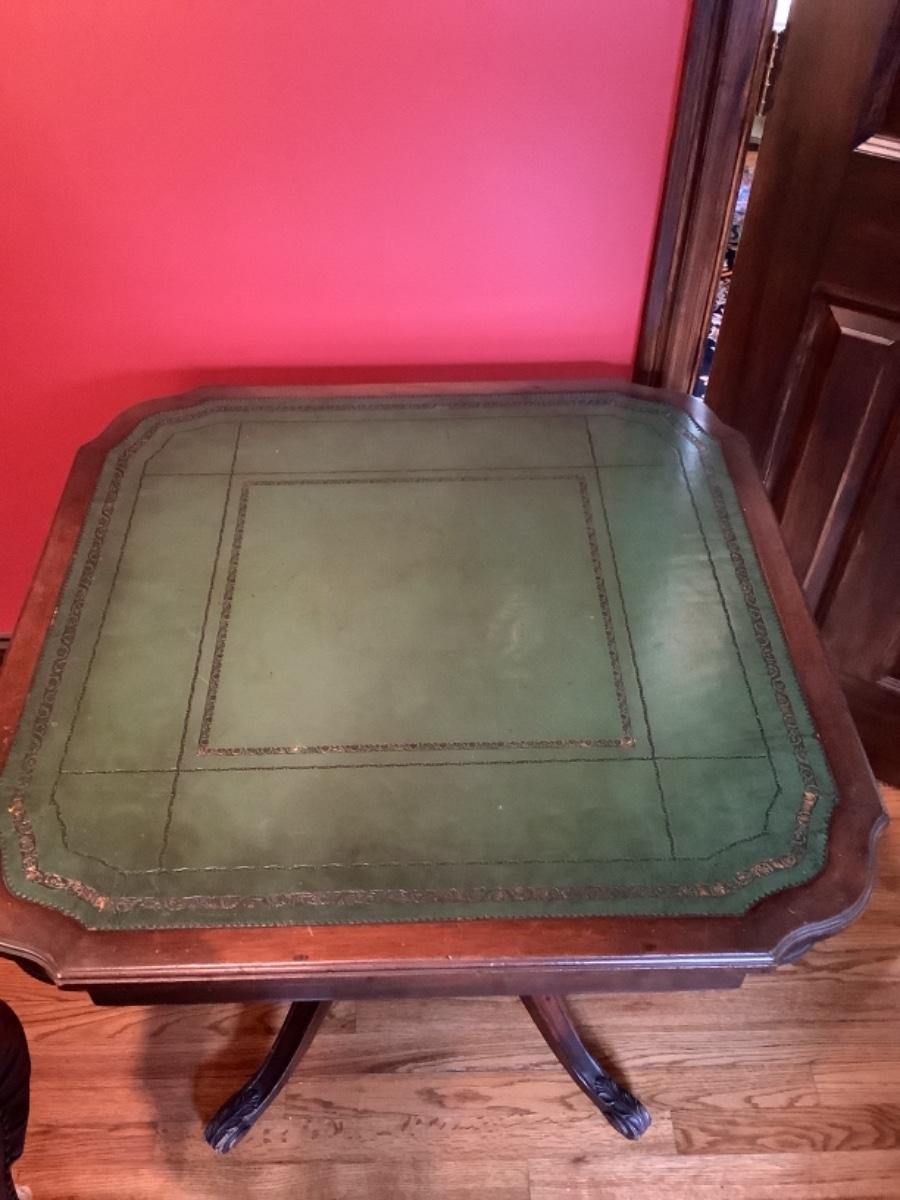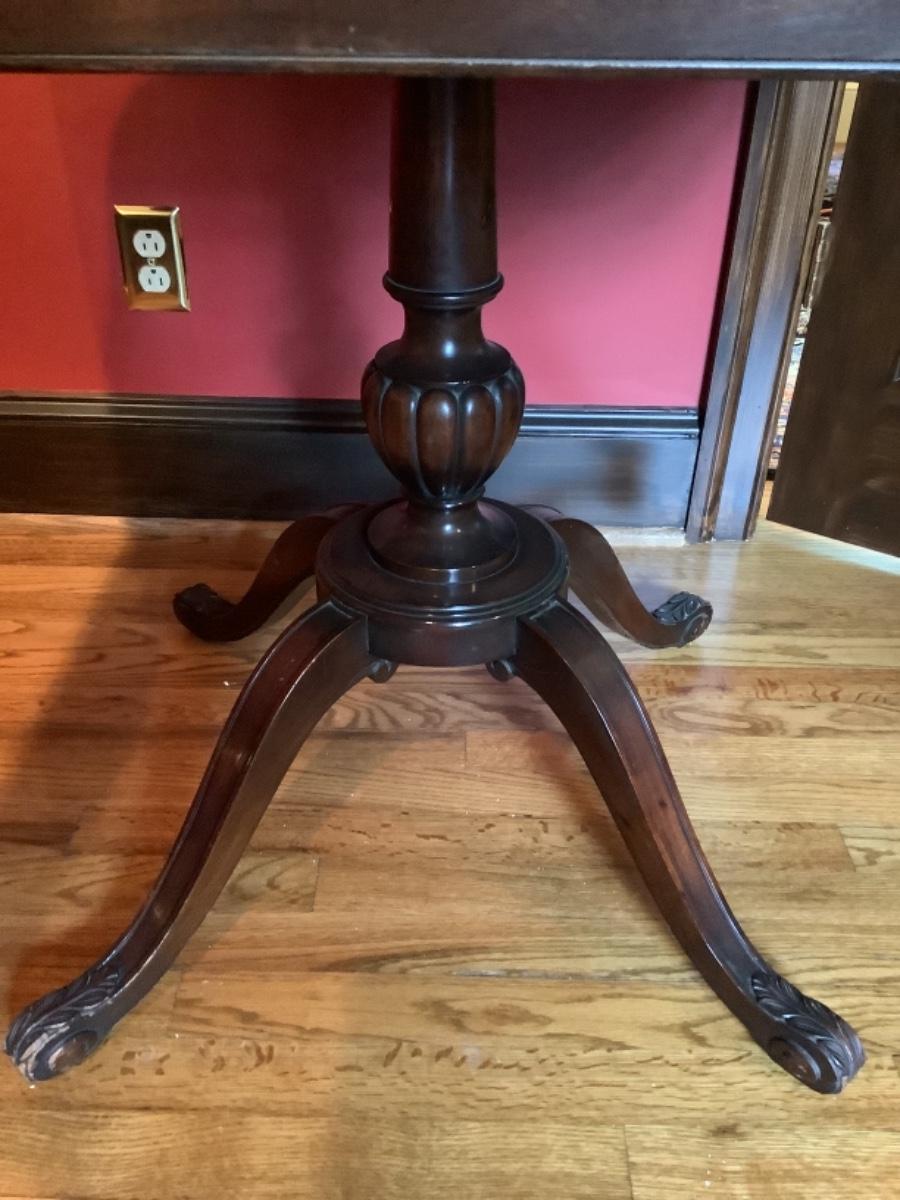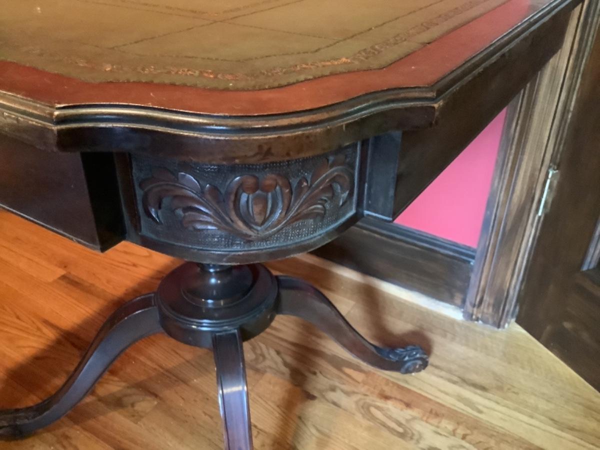 B795 Mahogany Leather Tooled Top Pedestal Table by R. J. Arnold Corp