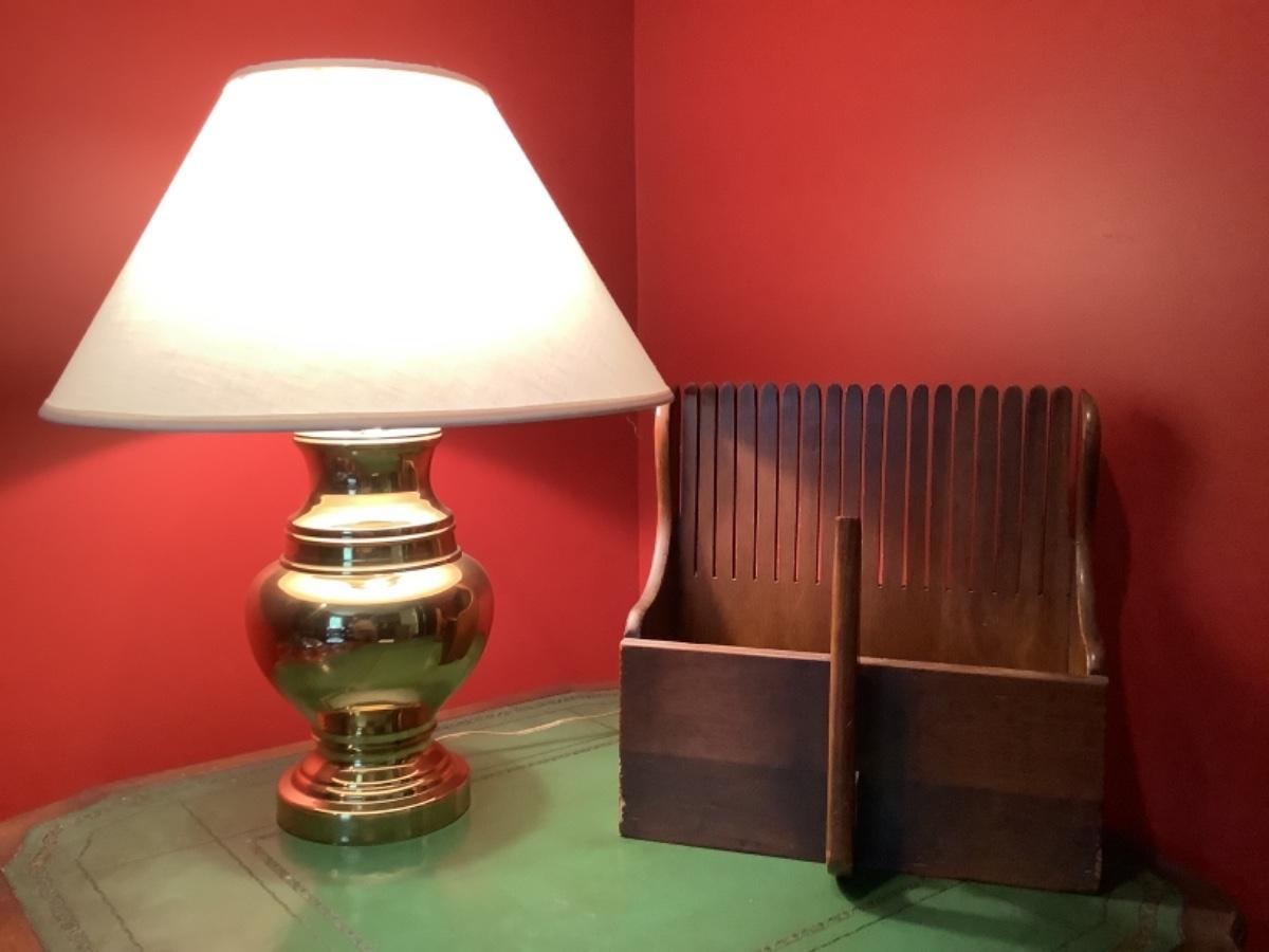 B796 Brass Lamp and Wooden Cranberry Scoop