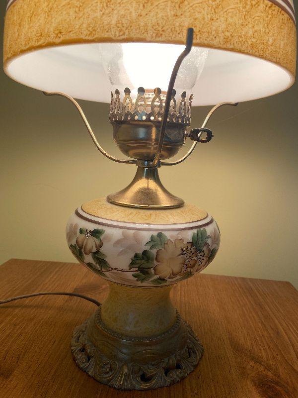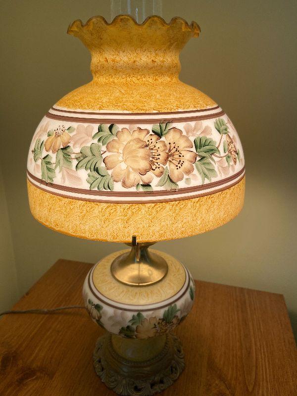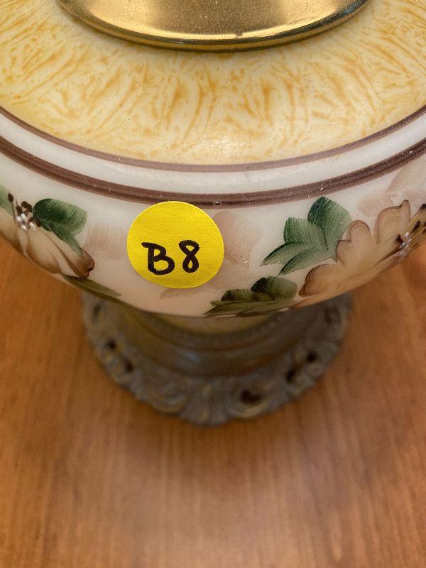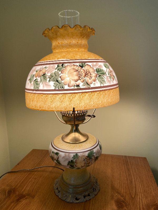 B8: Handpainted Glass and Brass Electric Lamp (Gone with the Wind style)