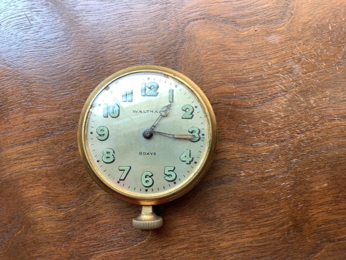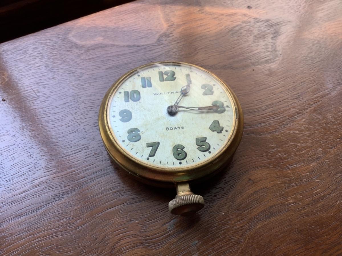 8 day pocket watch in non working condition , with antique books and framed bank note