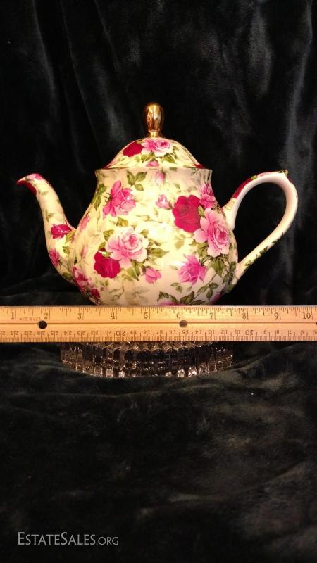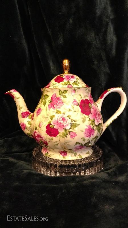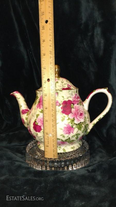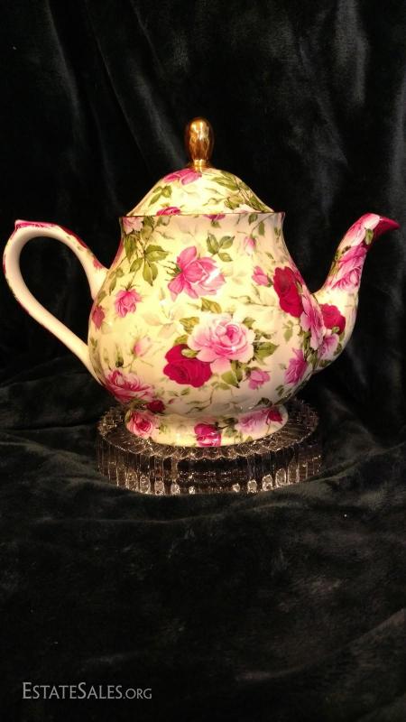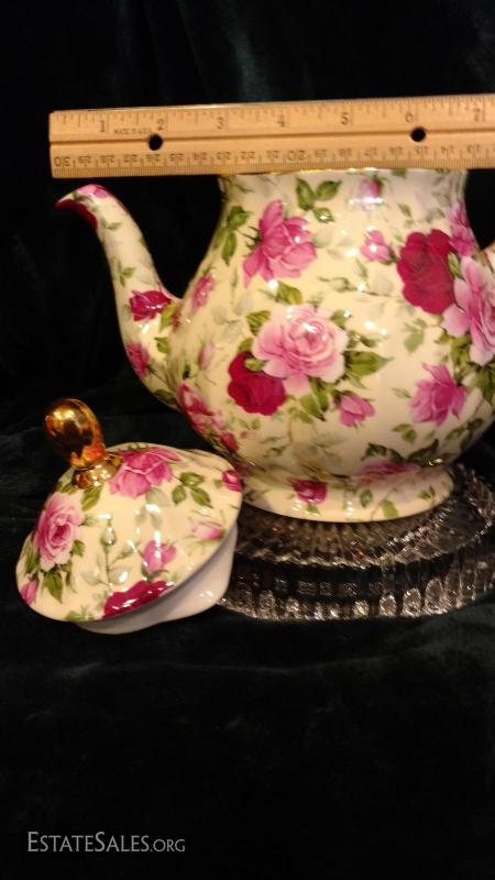VINTAGE Royal Gardens Teapot, Chintz Collection, Staffordshire, England. No cracks, chips or crazing. Mint condition (display model from tea shop). Measures approximately 10" from spout to handle and stands 7" tall.