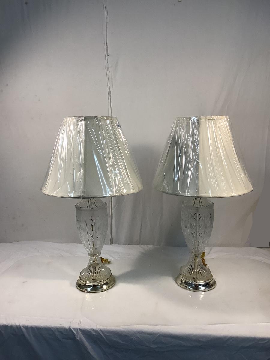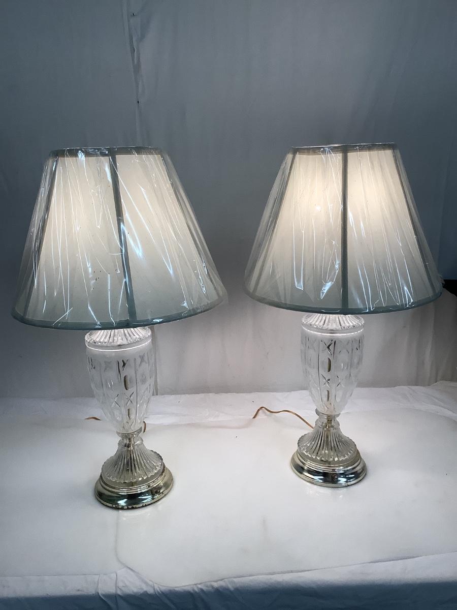 B874 Pair of Vintage Glass Lamp with Brass Base