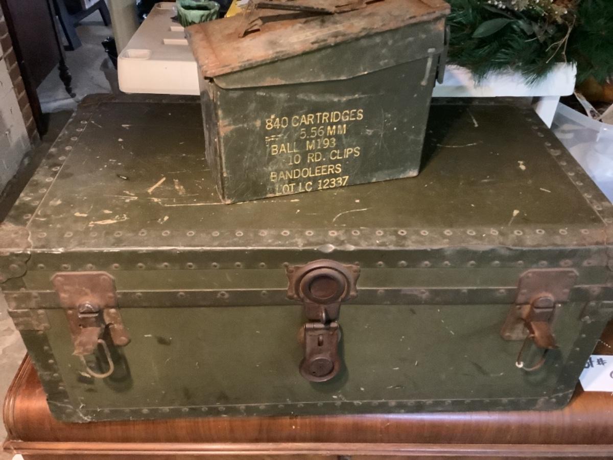 B939 Vintage Metal Chest with Tray & Ammo Box