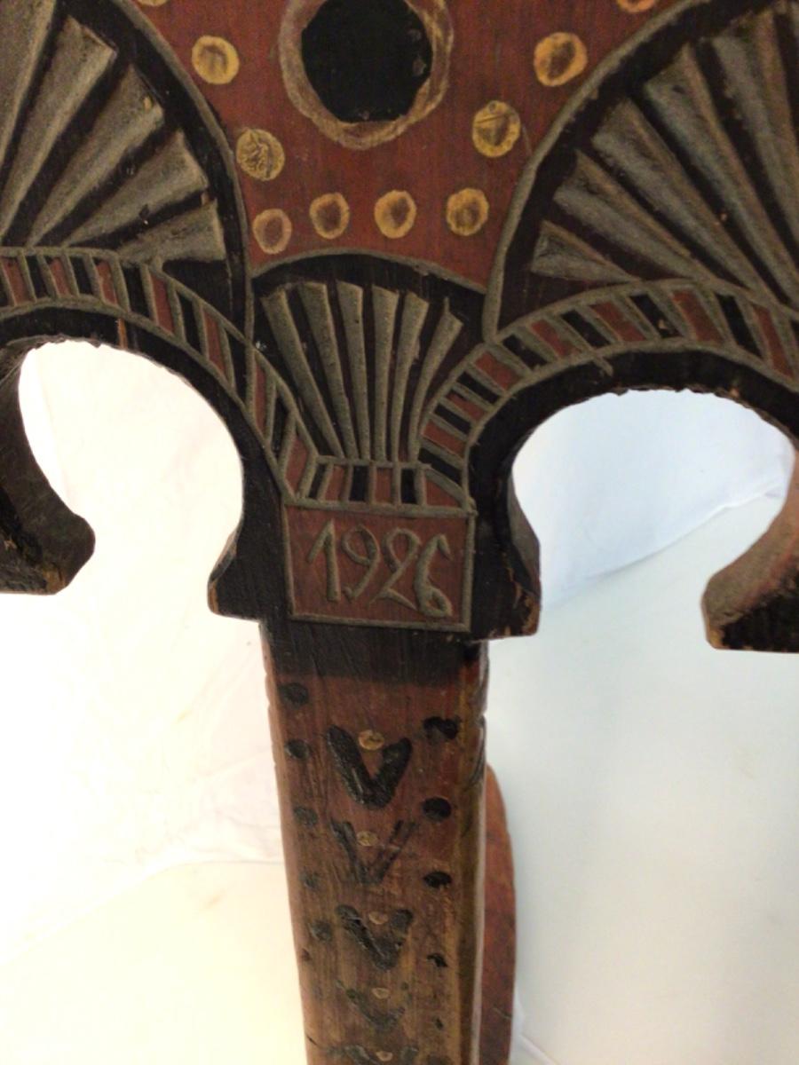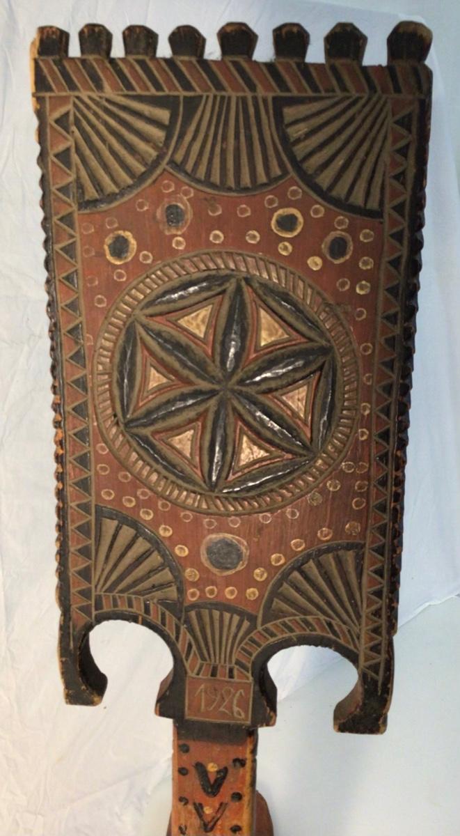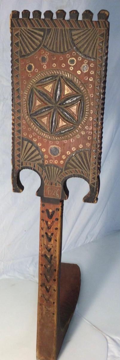 B942 Vintage Pinwheel Design Carved Handpainted  Russian Distaff