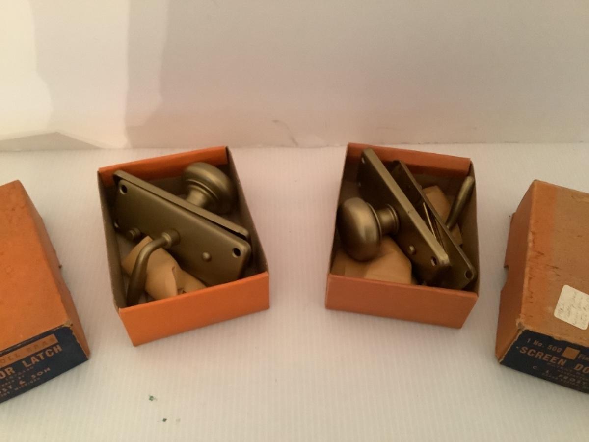 B969 Two Original Vintage Dull Brass Screen Door Hardware