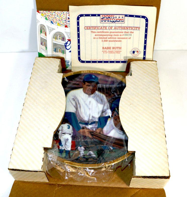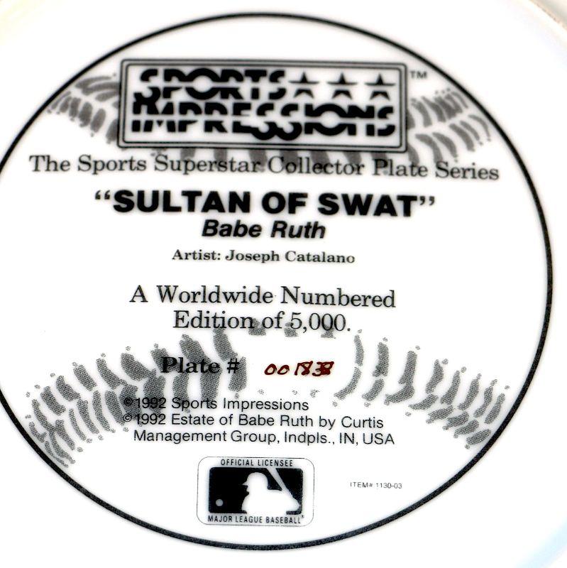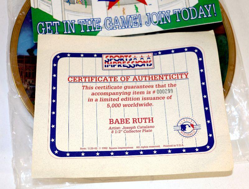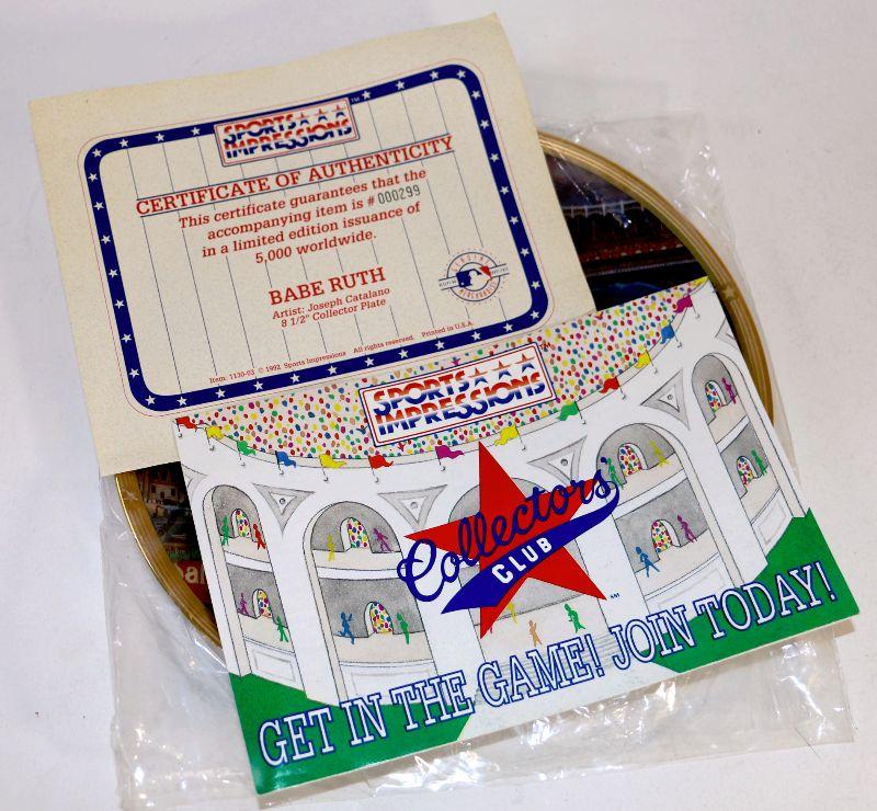 1992 "Sultan of Swat" Babe Ruth 8-1/2" Collector's plate # 1838/5000 Limited Edition Plate w/COA & Box by Sports Impressions - Collector's Item!