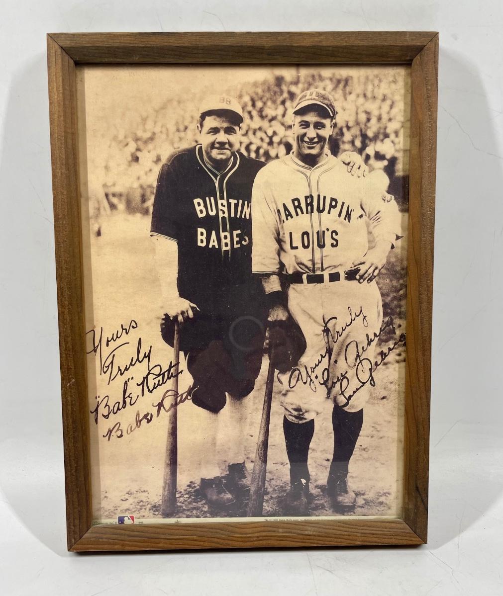 Babe Ruth + Lou Gehrig 8x10 Signed Framed Baseball Players Photo