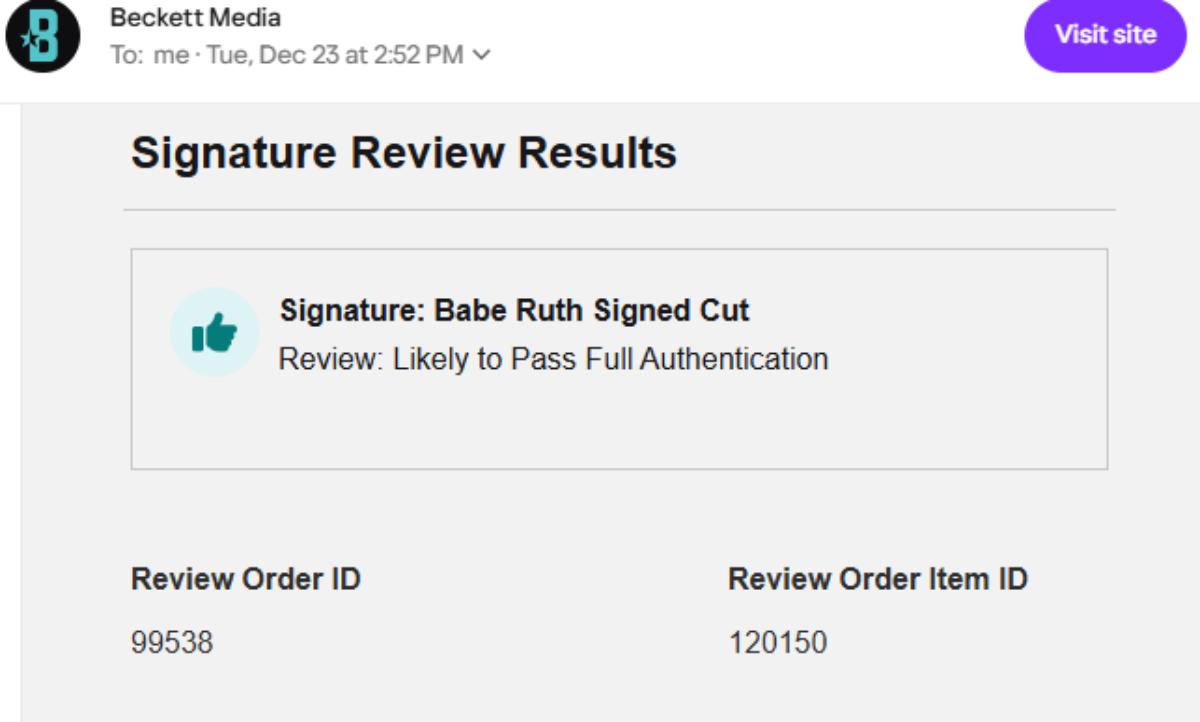 For sale: Babe Ruth signed old cut paper. When I submitted the signature to Beckett's signature review, which is a $10 quick opinion based on the image alone, it turned up as likely to pass full authentication.