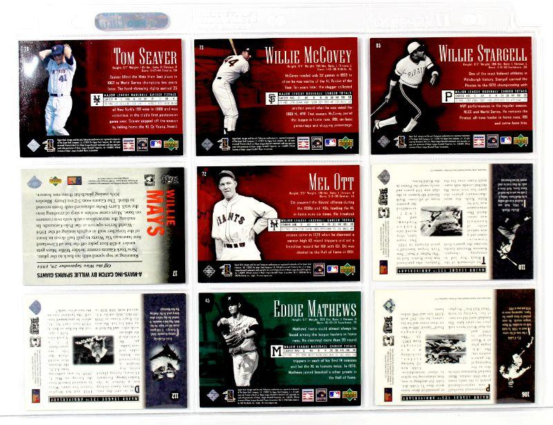 BABE RUTH TY COBB LOU GEHRIG WILLIE MAYS Willie McCovey HOF BASEBALL CARDS SET of 9 MINT