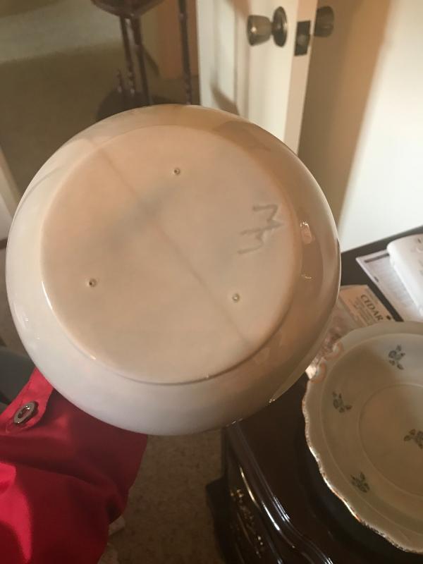 Baby Blue Floral Pitcher & Bowl - Signed MM