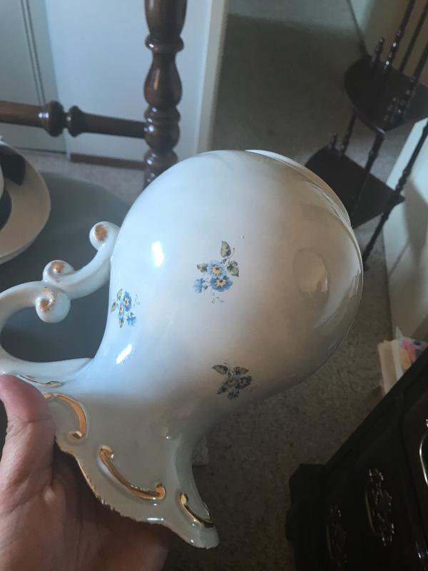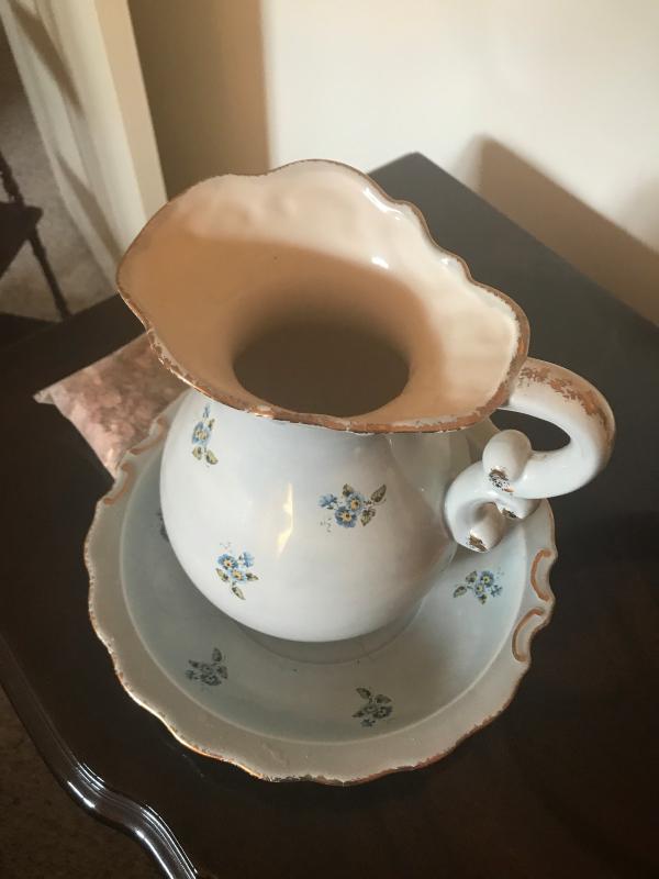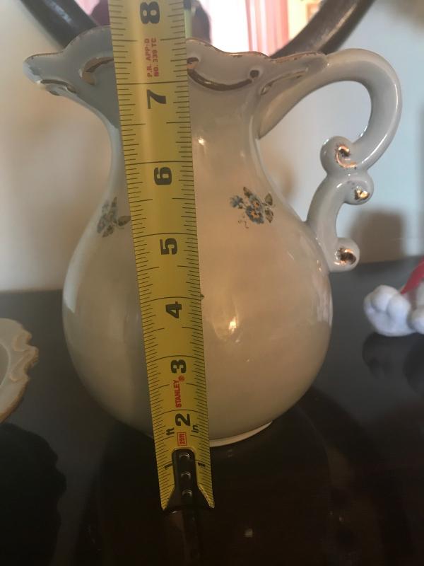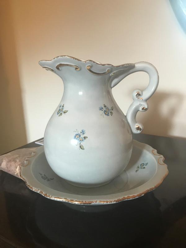 Baby Blue Floral Pitcher & Wash Basin- Signed MM