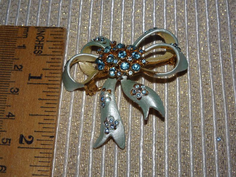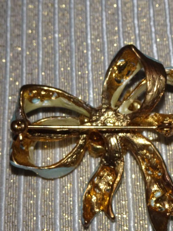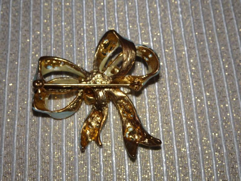 Baby Blue Rhinestone Bow, Ribbon Pin Brooch