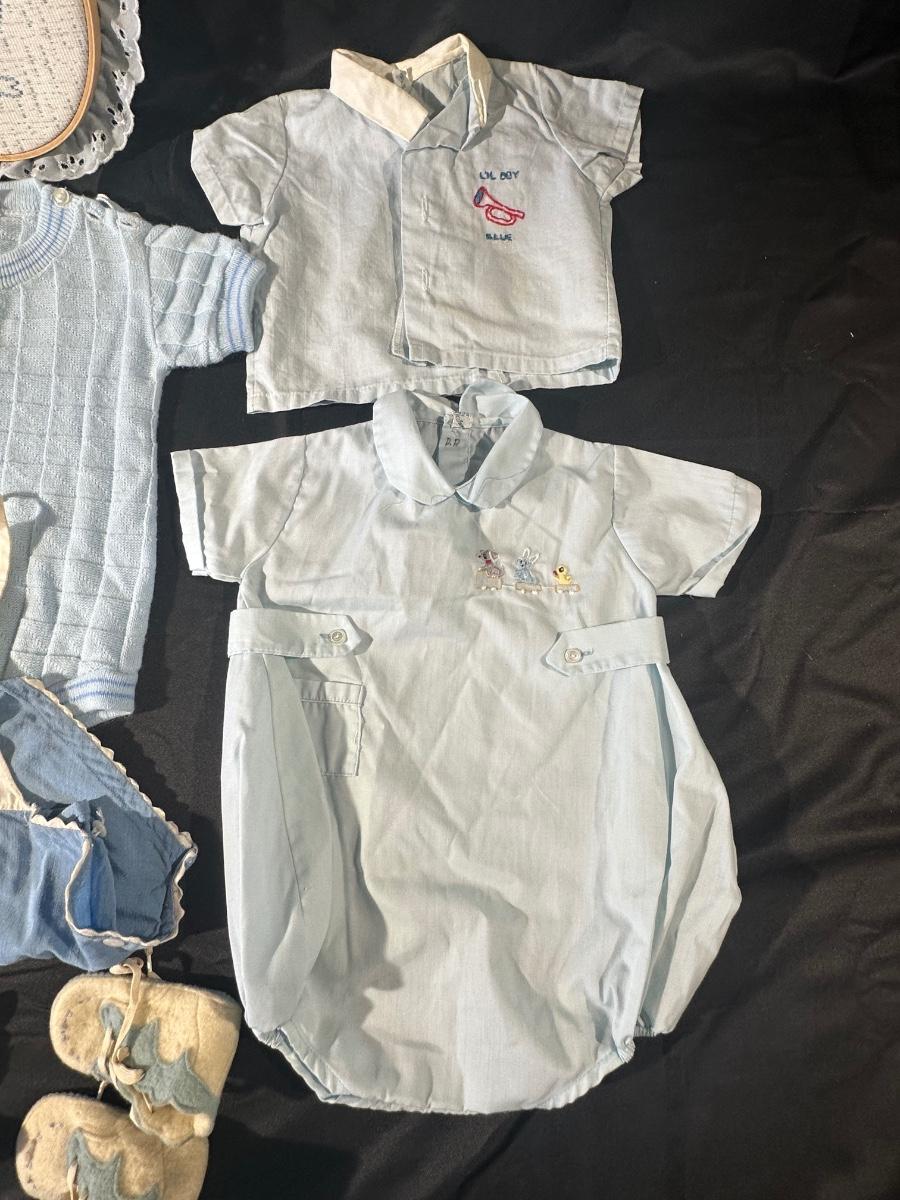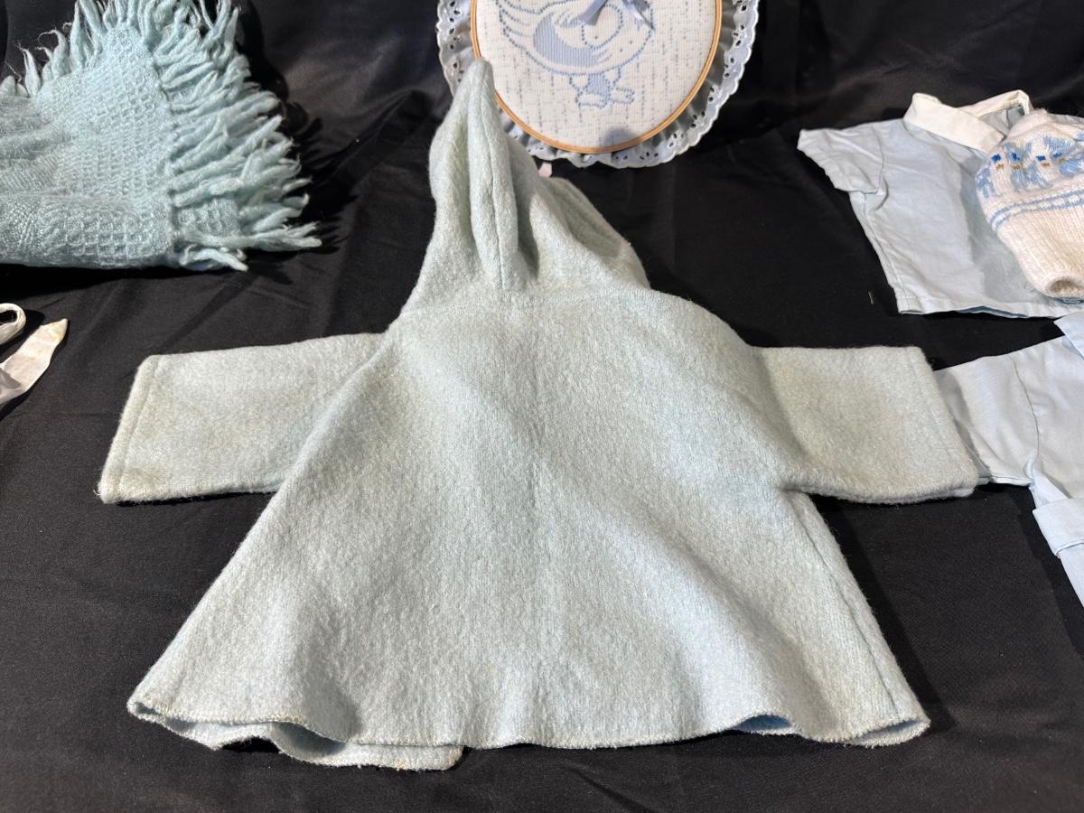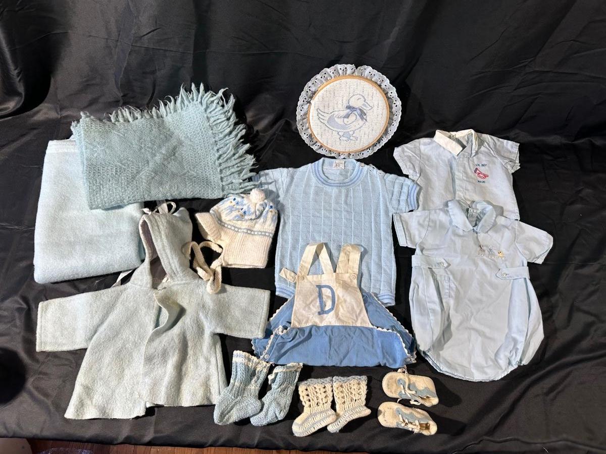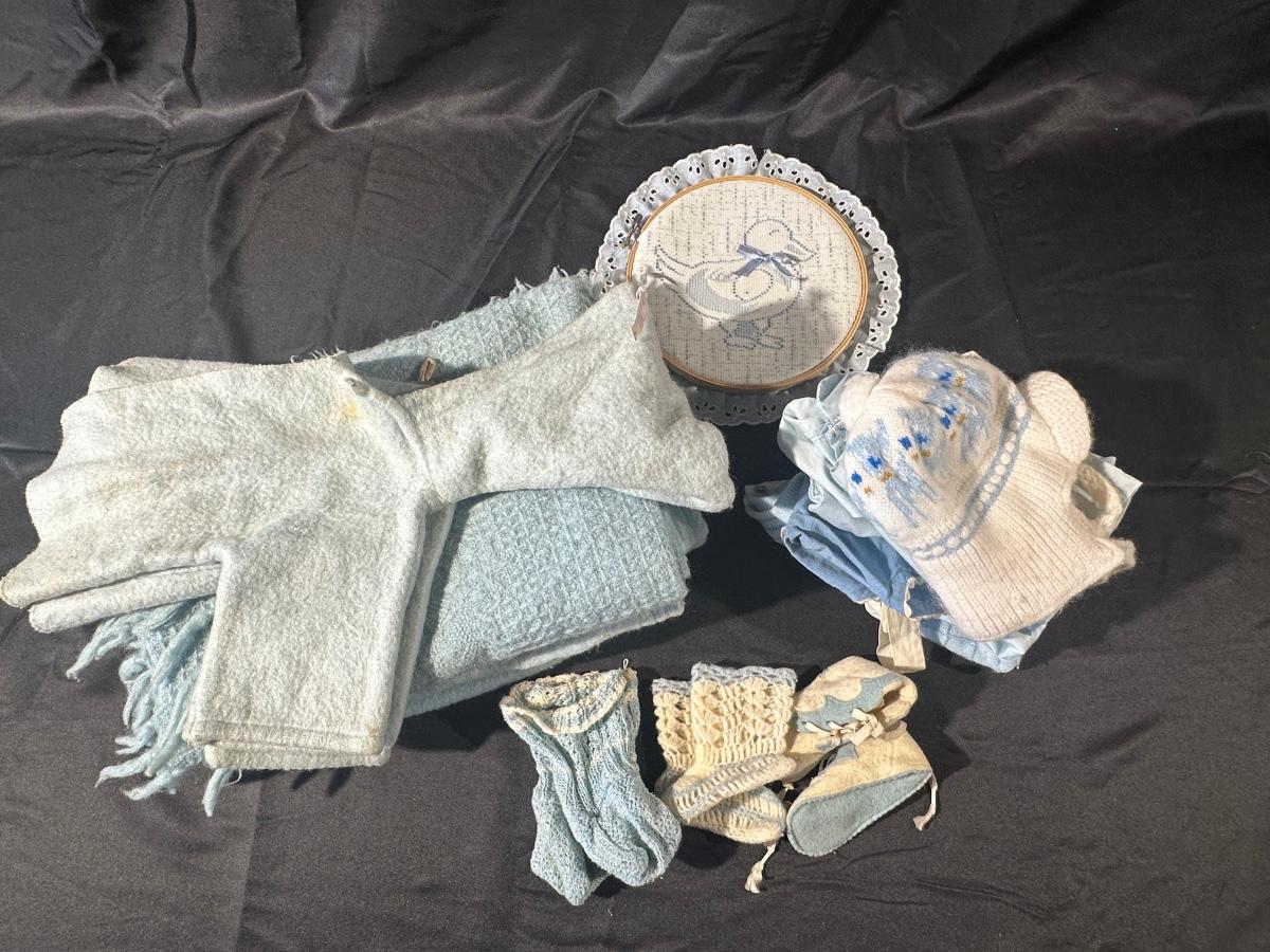 Baby Blues! Lot of Vintage & Antique Baby Clothing including a Baby Blanket & Woolen Bunting