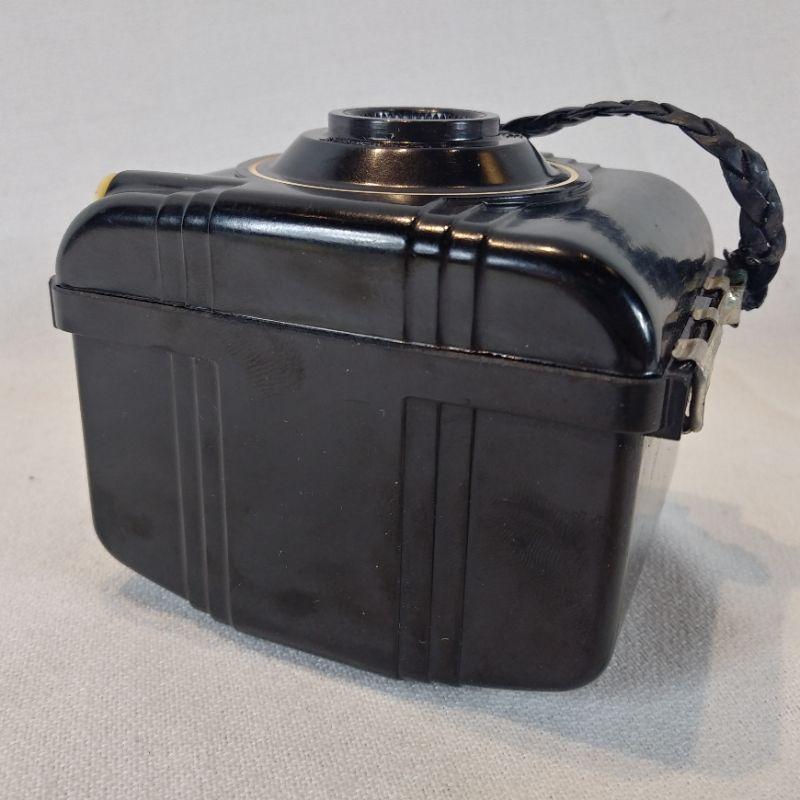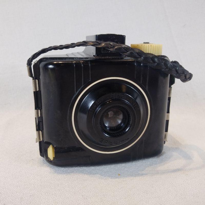 Old Camera Buff Alert!!! This is a very sweet and hard-to-find "Baby Brownie Special" Camera. The braided leather strap is still in good condition. Made in USA by Eastman Kodak Co - Rochester, NY. It measures 3 1/2-inches wide X 3-inches deep X 3-inches tall. Shutter shutters. It is in very good condition, Reserve/Starting Bid is $10.