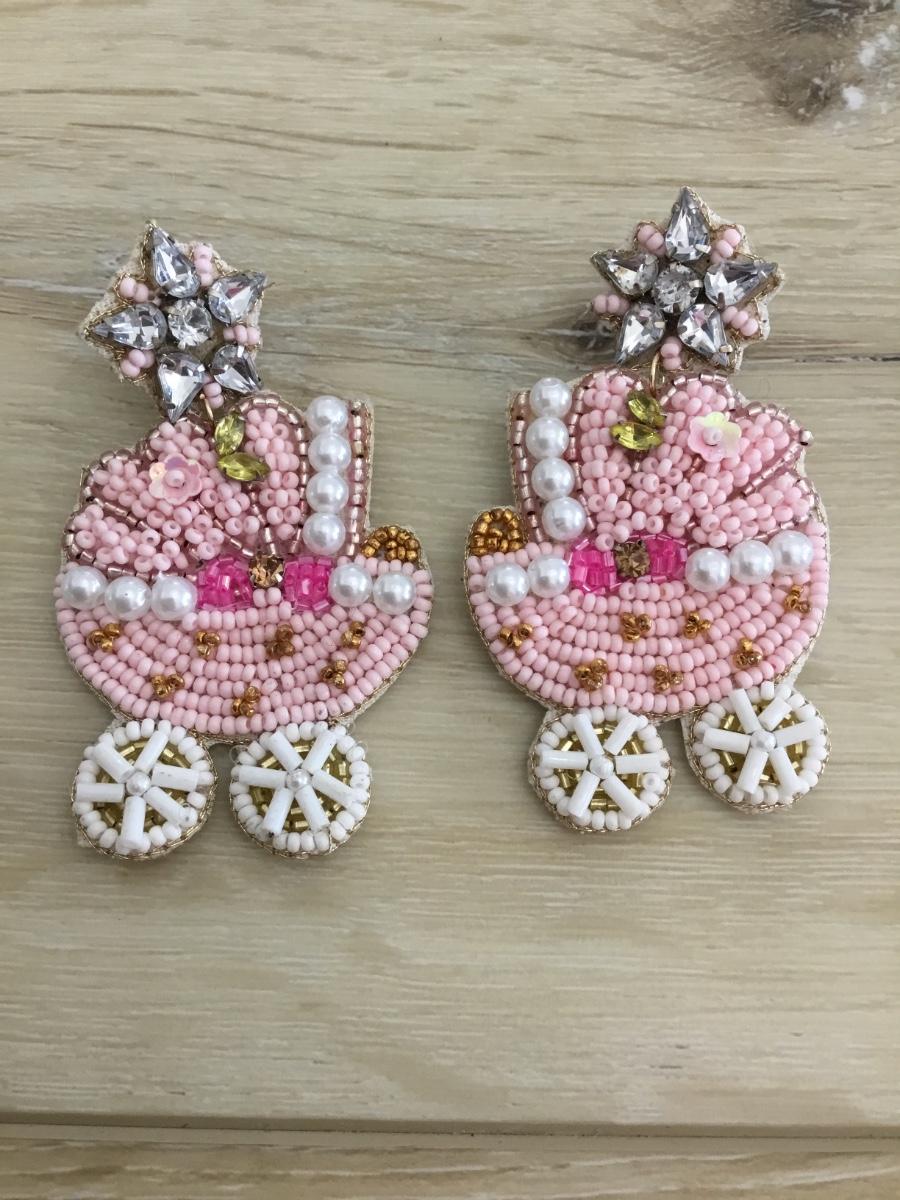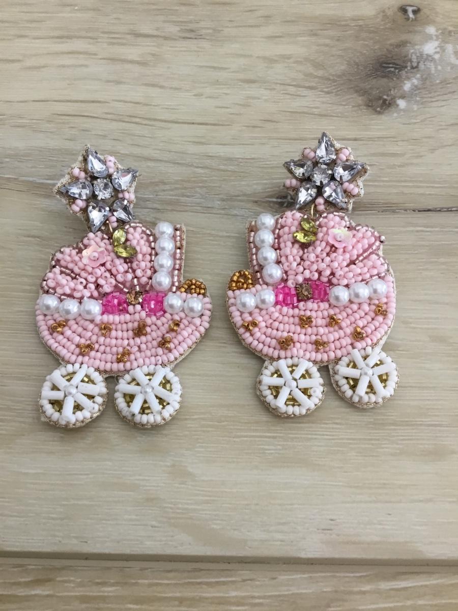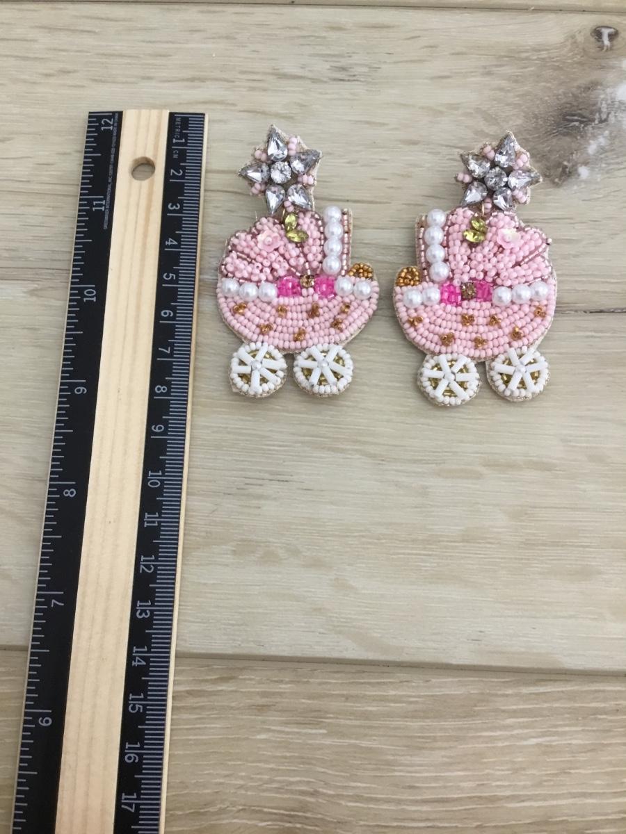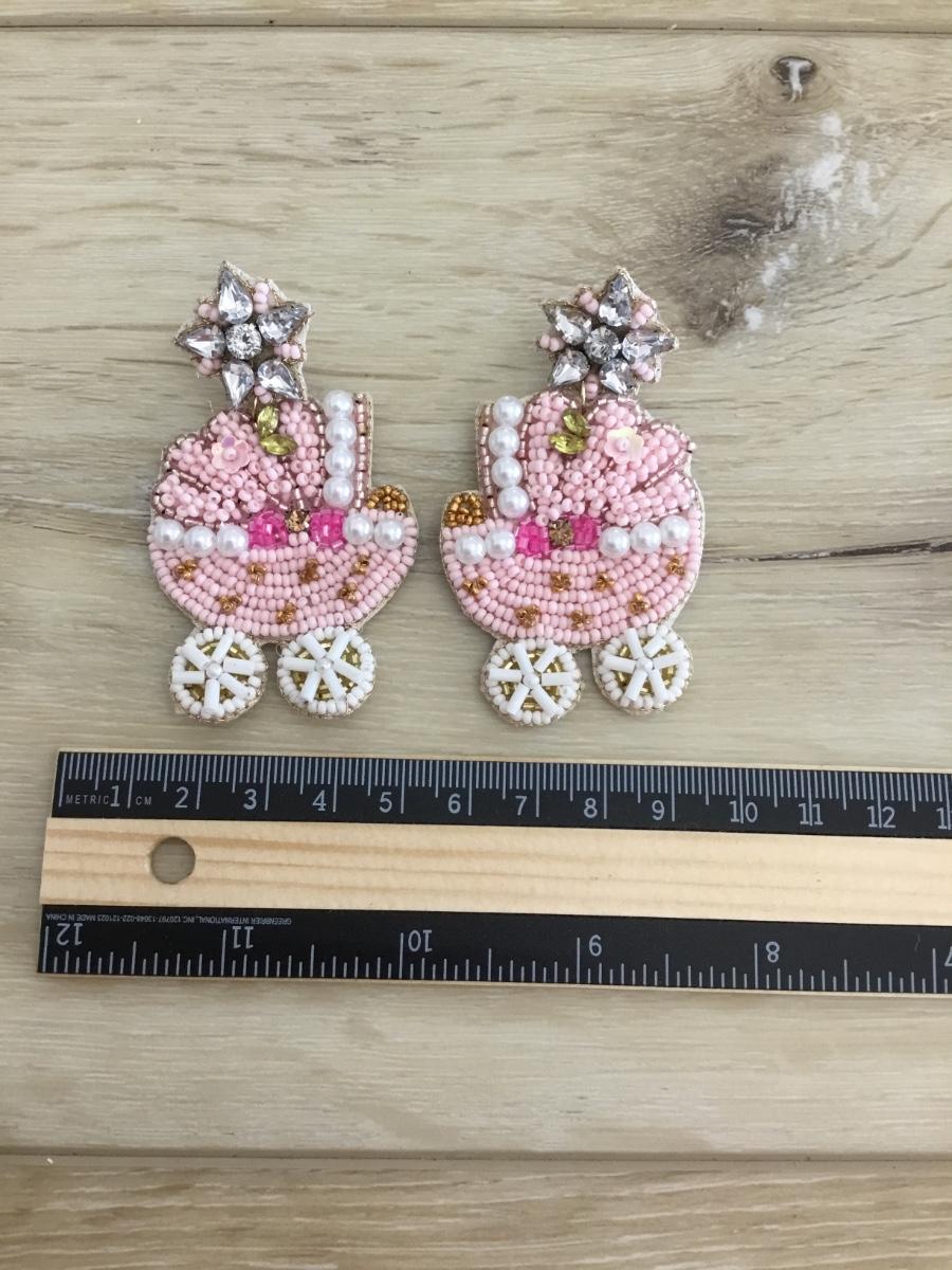 Baby carriage, seed bead earrings