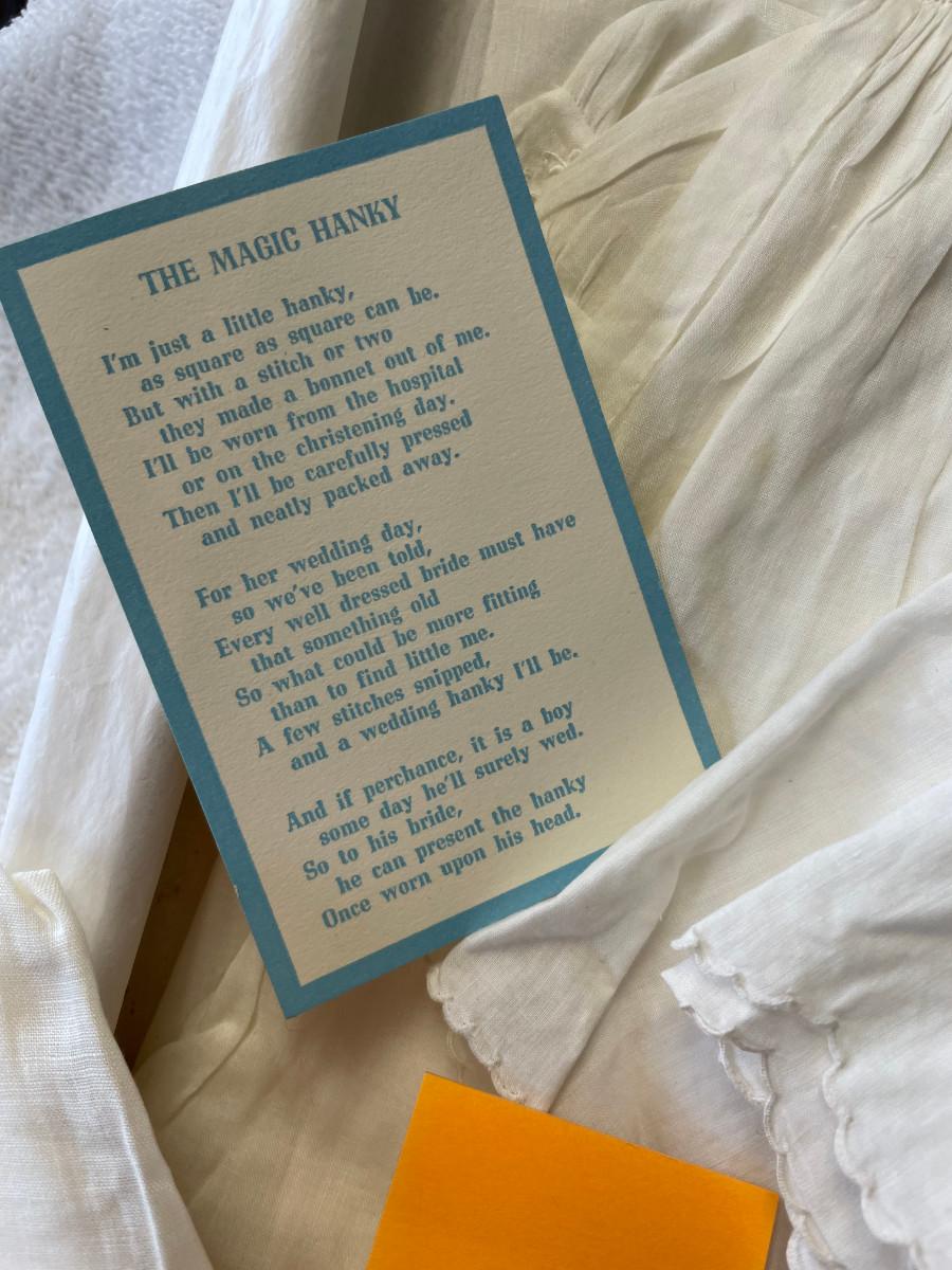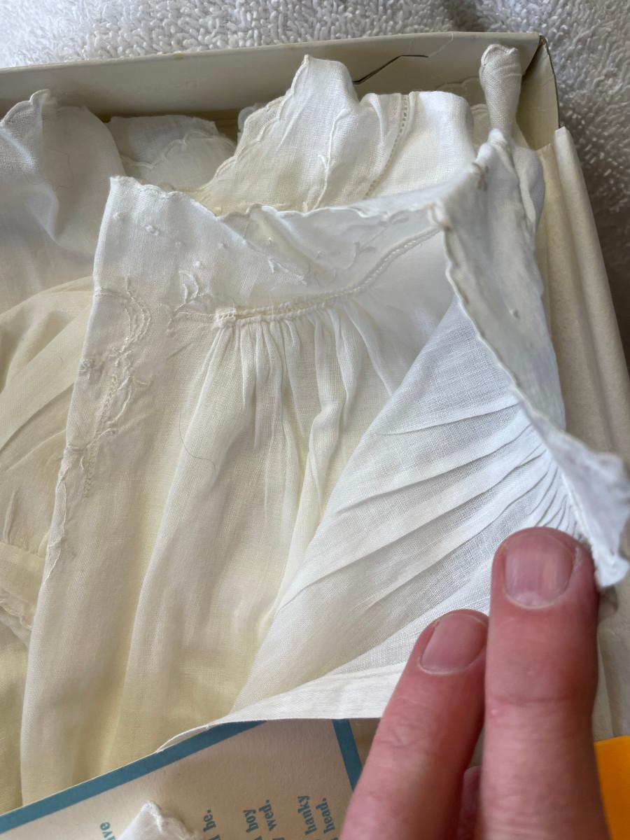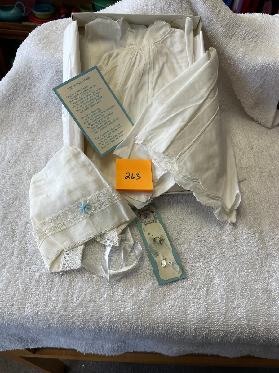 Very vintage piece! Two piece dress w/ hankie bonnet.