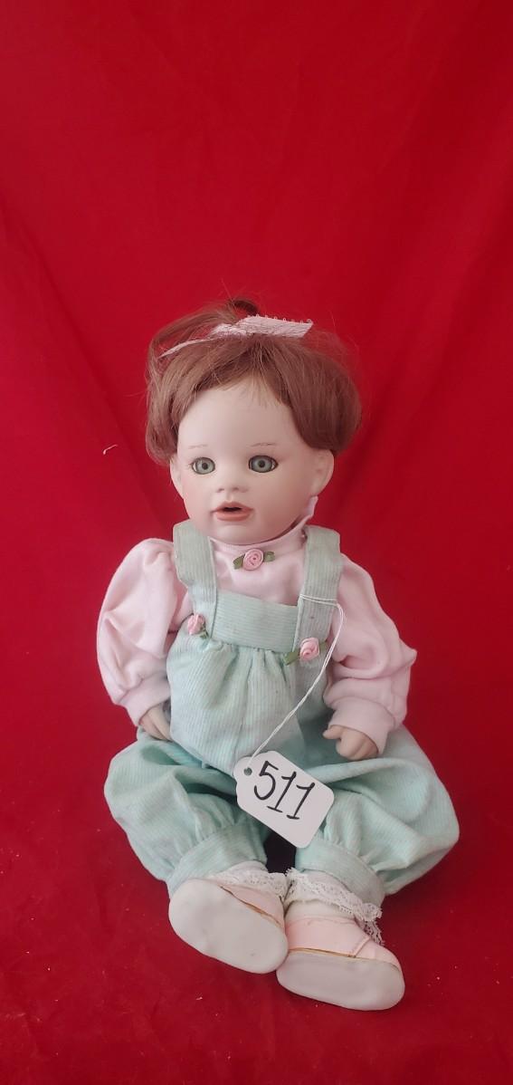 9" Doll in Mint Green Overalls