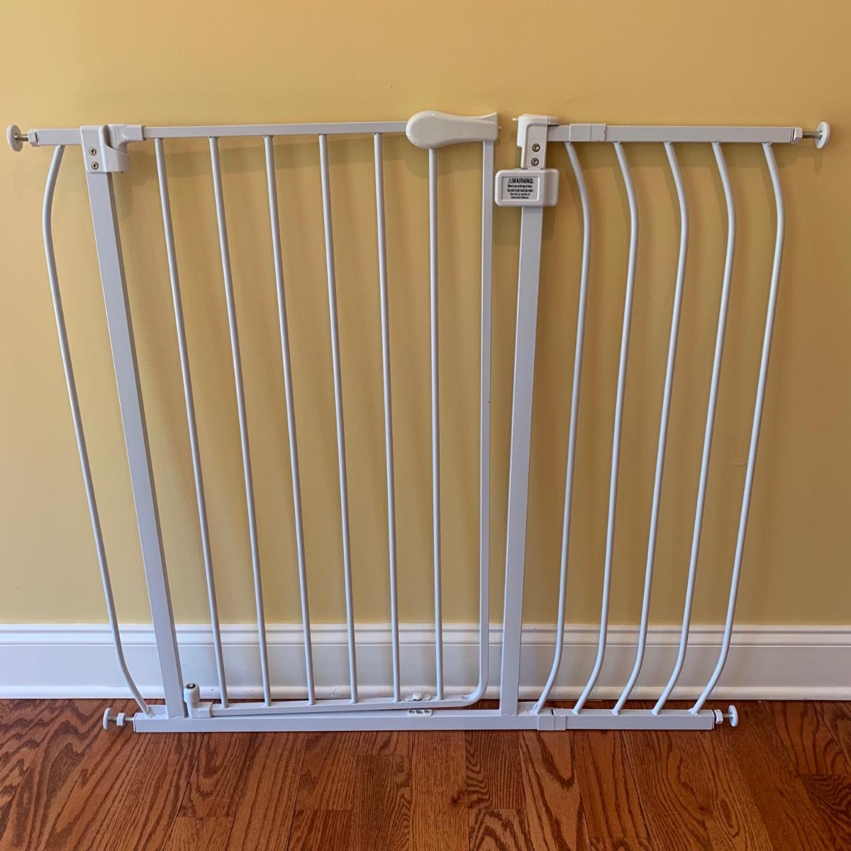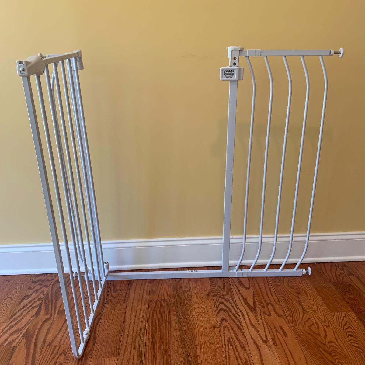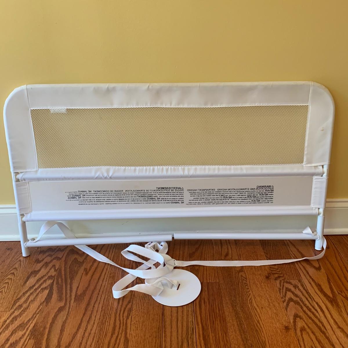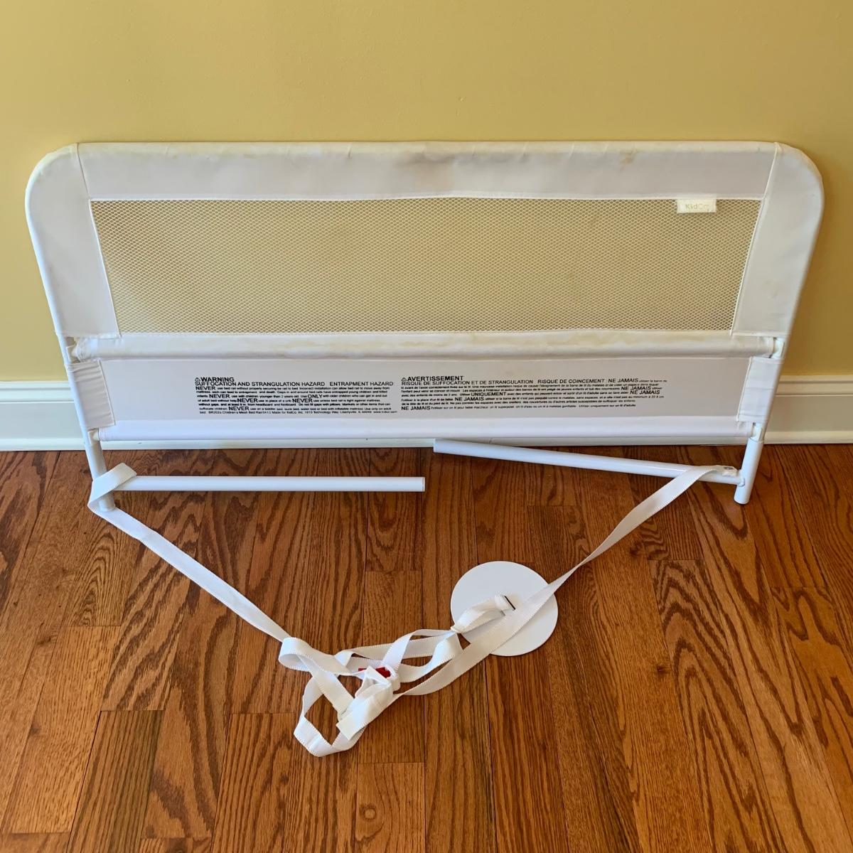 This lot includes child safety necessities. Baby gate, two Baby Bjorn step stools, and bed rail. Baby gate is adjustable and measures 36” x .75” x 38”H at the smallest setting. Bed rail appears to be adjustable as well. Local pickup only.