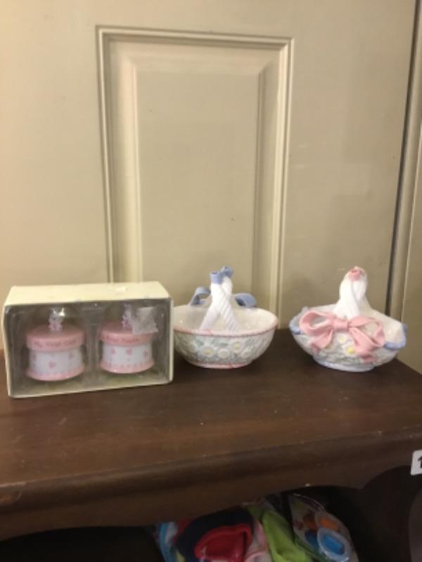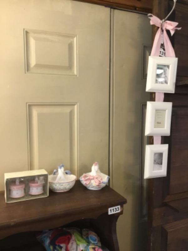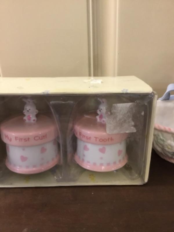 Baby girl frame, curl tooth set, baskets Lot 1135