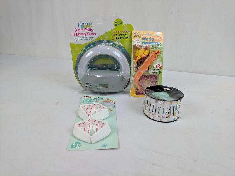 Baby Lot, WedgEZ the Outlet Plug Remover, Corner Protectors, Happy Wax Baby Powder - New
