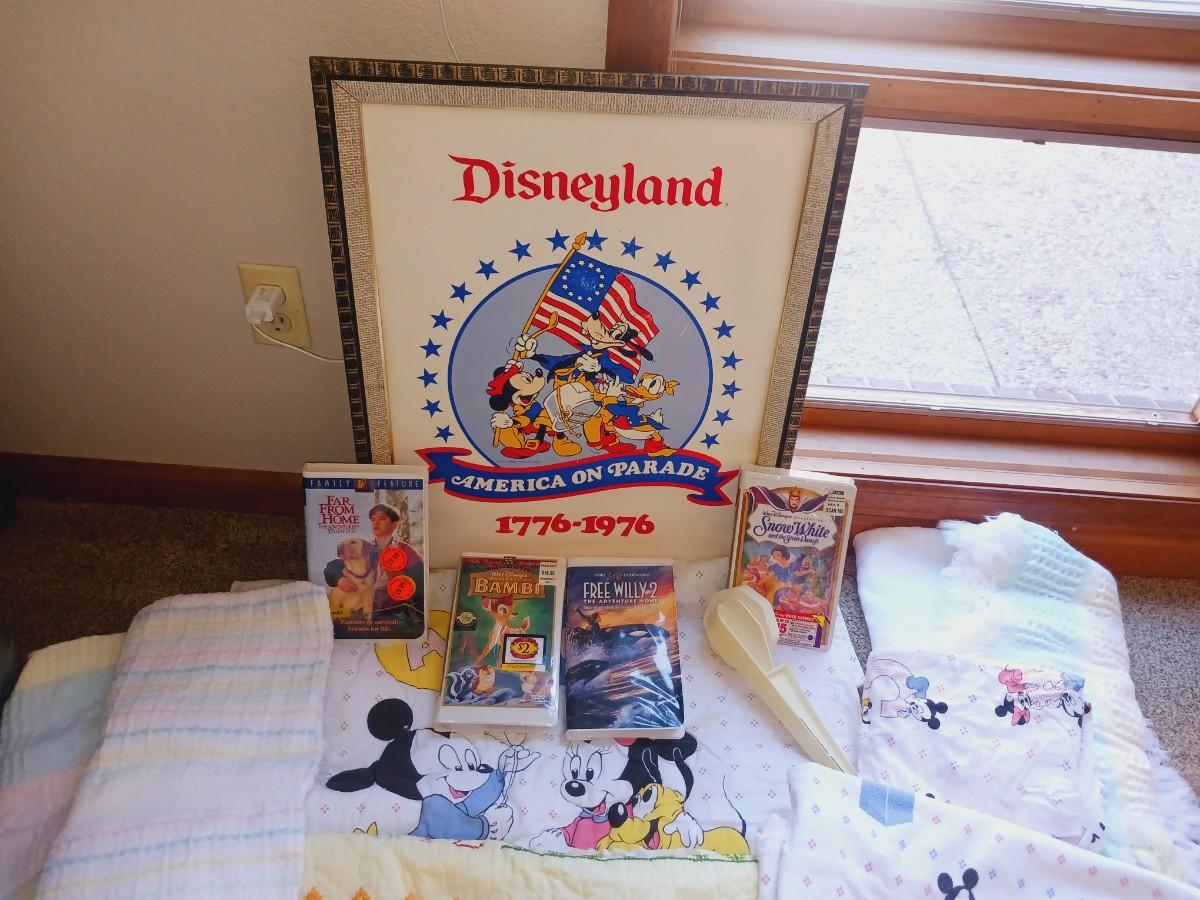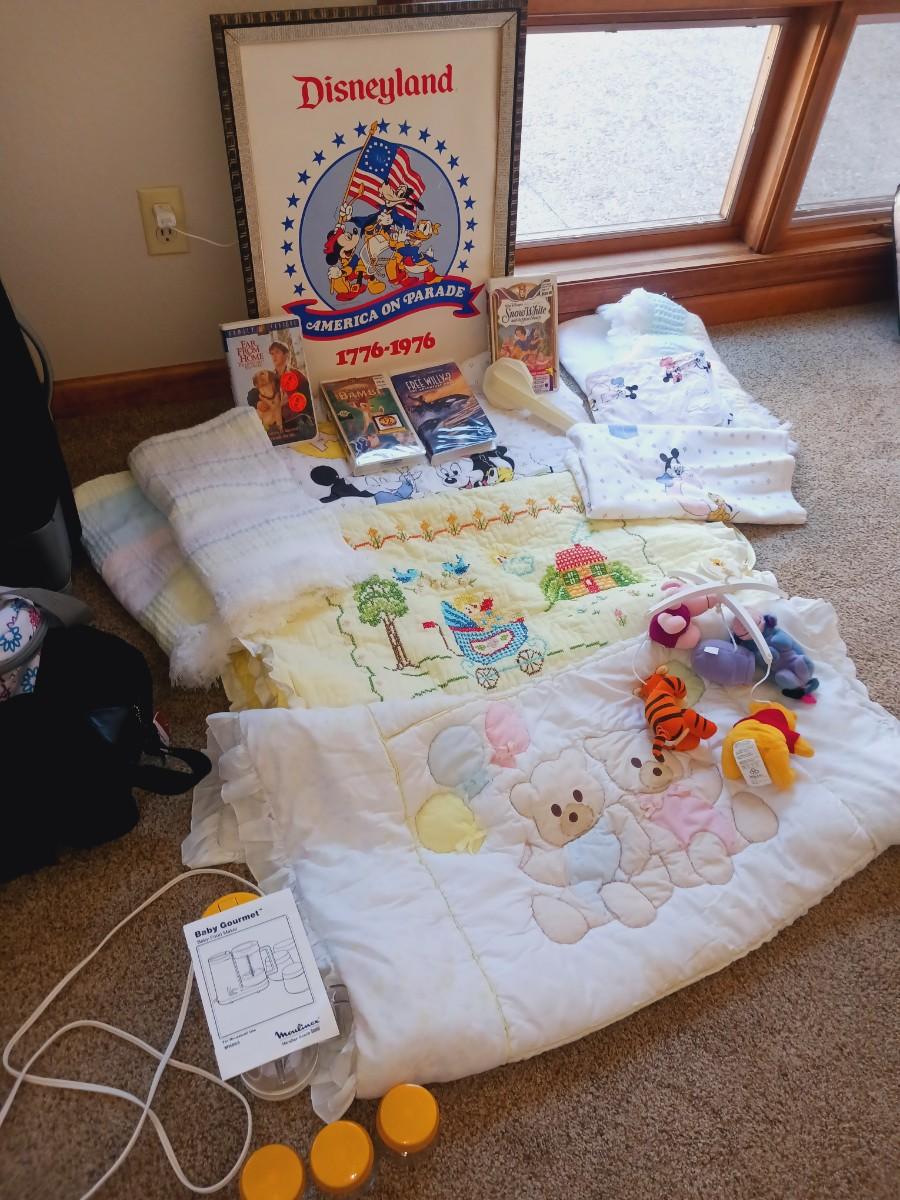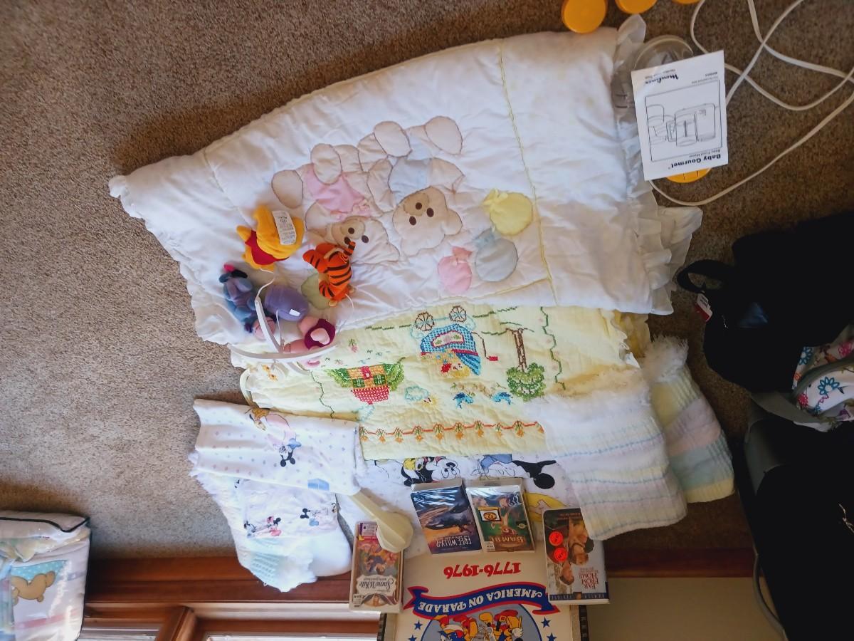 BABY QUILTS/BLANKETS, WINNIE THE POOH MOBILE, DISNEY VHS MOVIES AND MORE